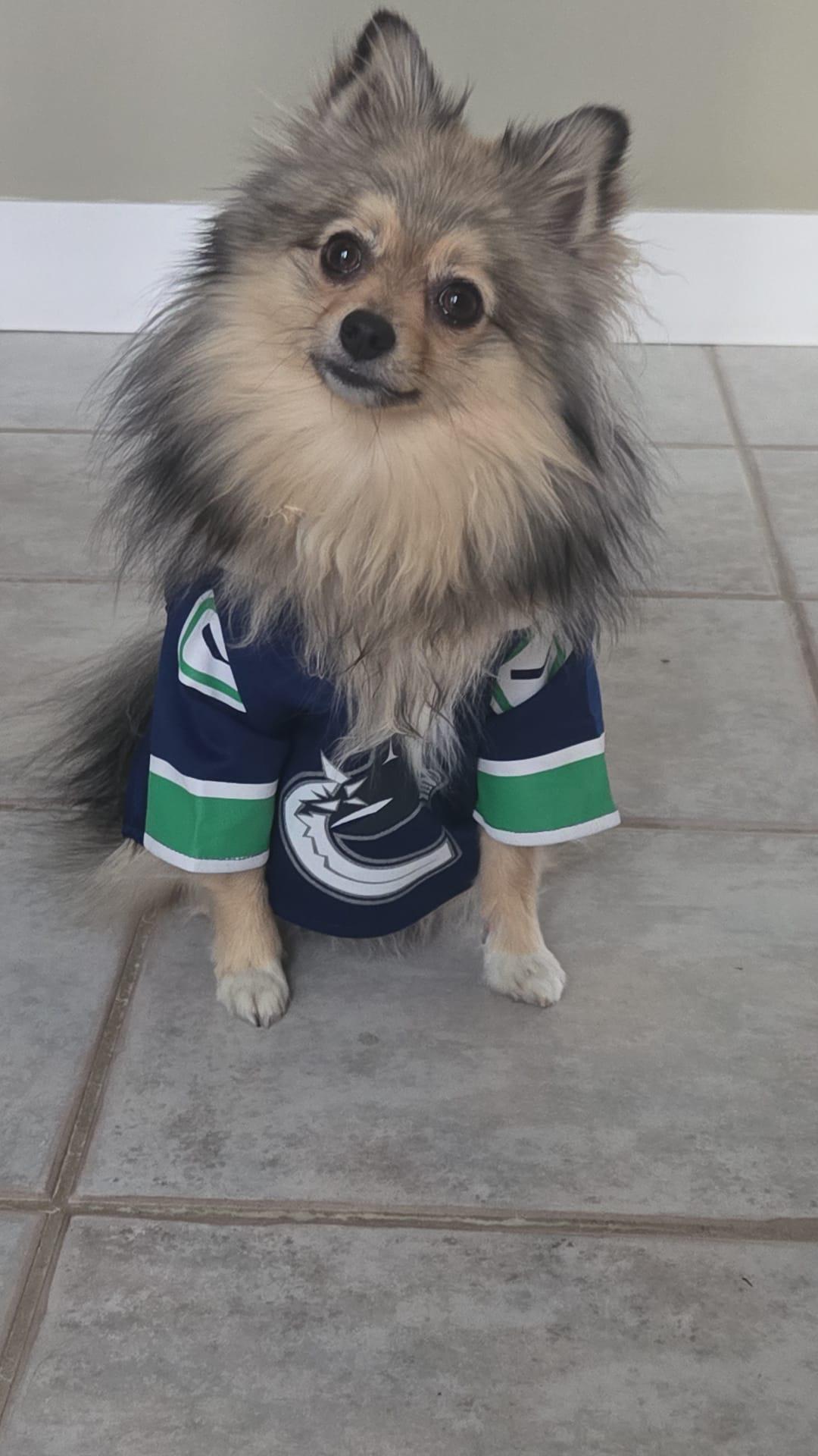 Should be legit – Homesense, Winners, Marshall’s get tons of licensed Canucks stuff this time of year. Honestly a knockoff dog jersey is probably tougher to find than an official one