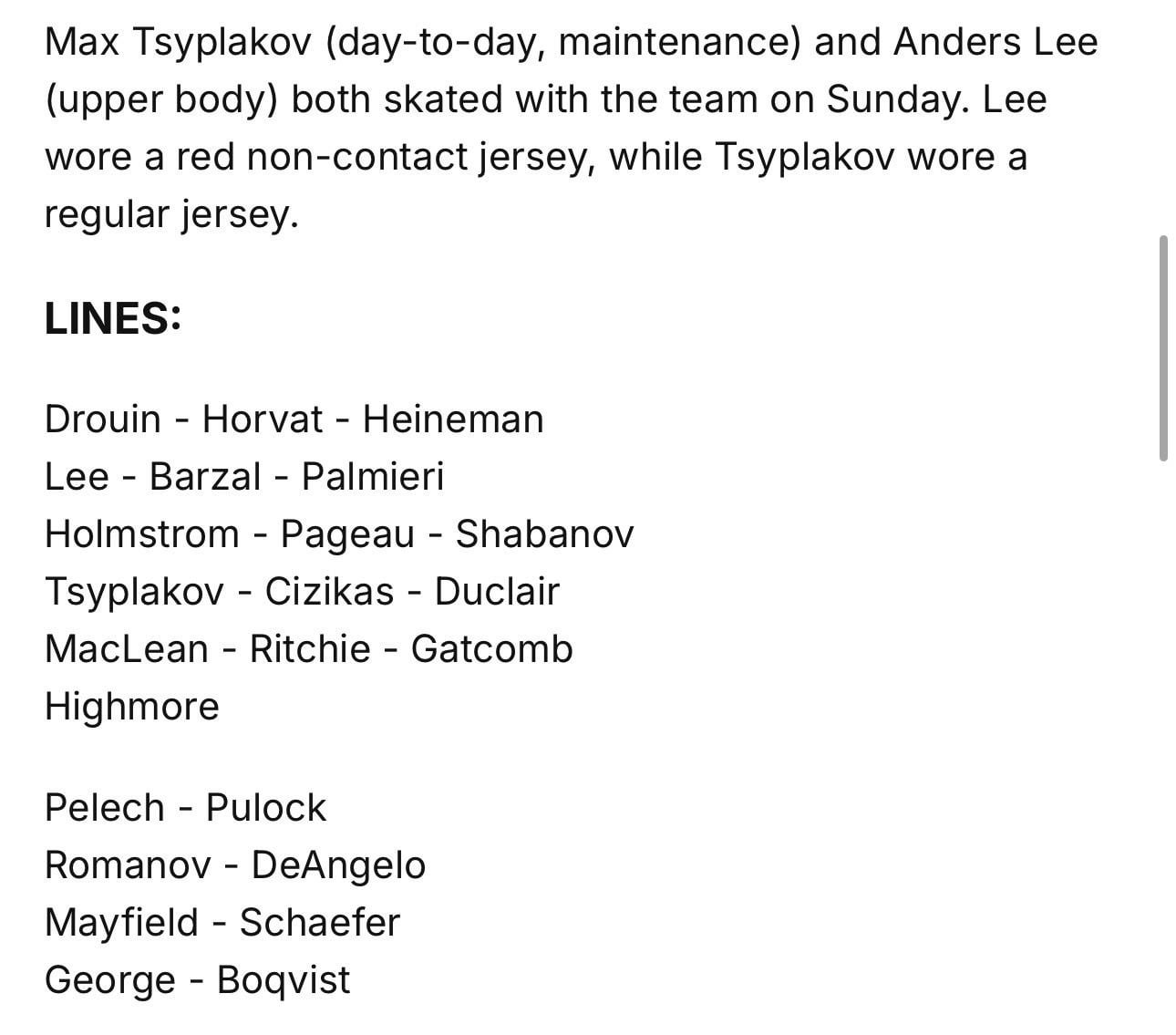 Islanders remaining lines/players at training camp