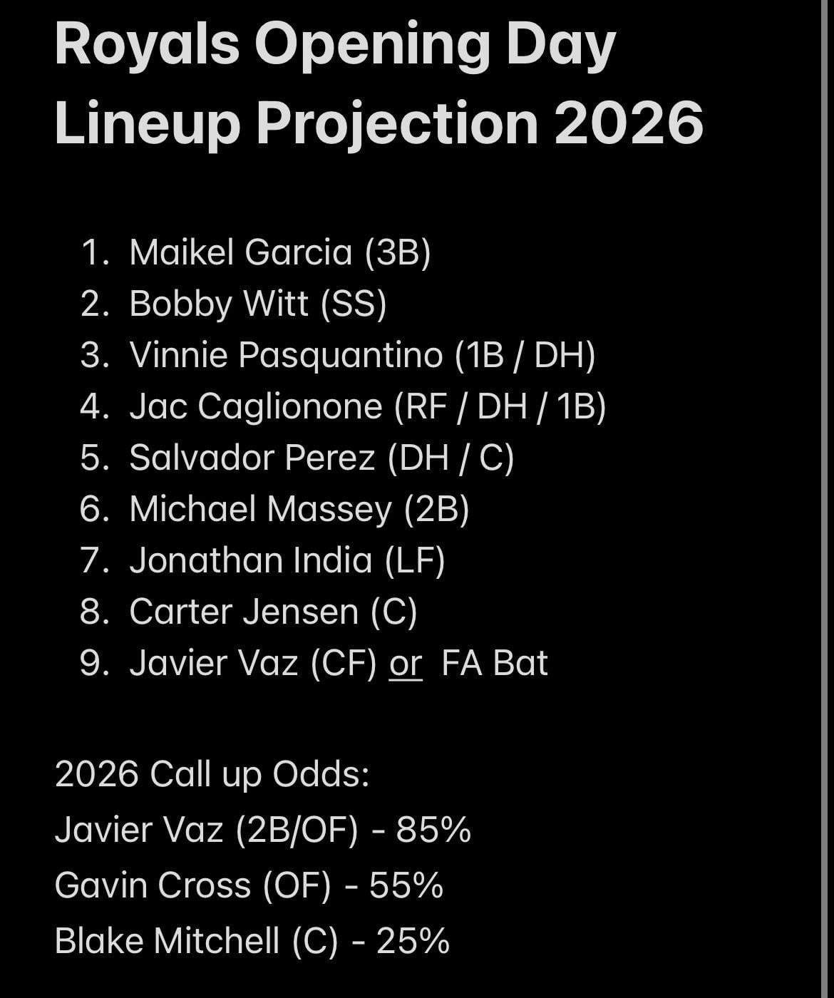 Hmmm this is a terrible projection. I feel like you don’t watch the Royals