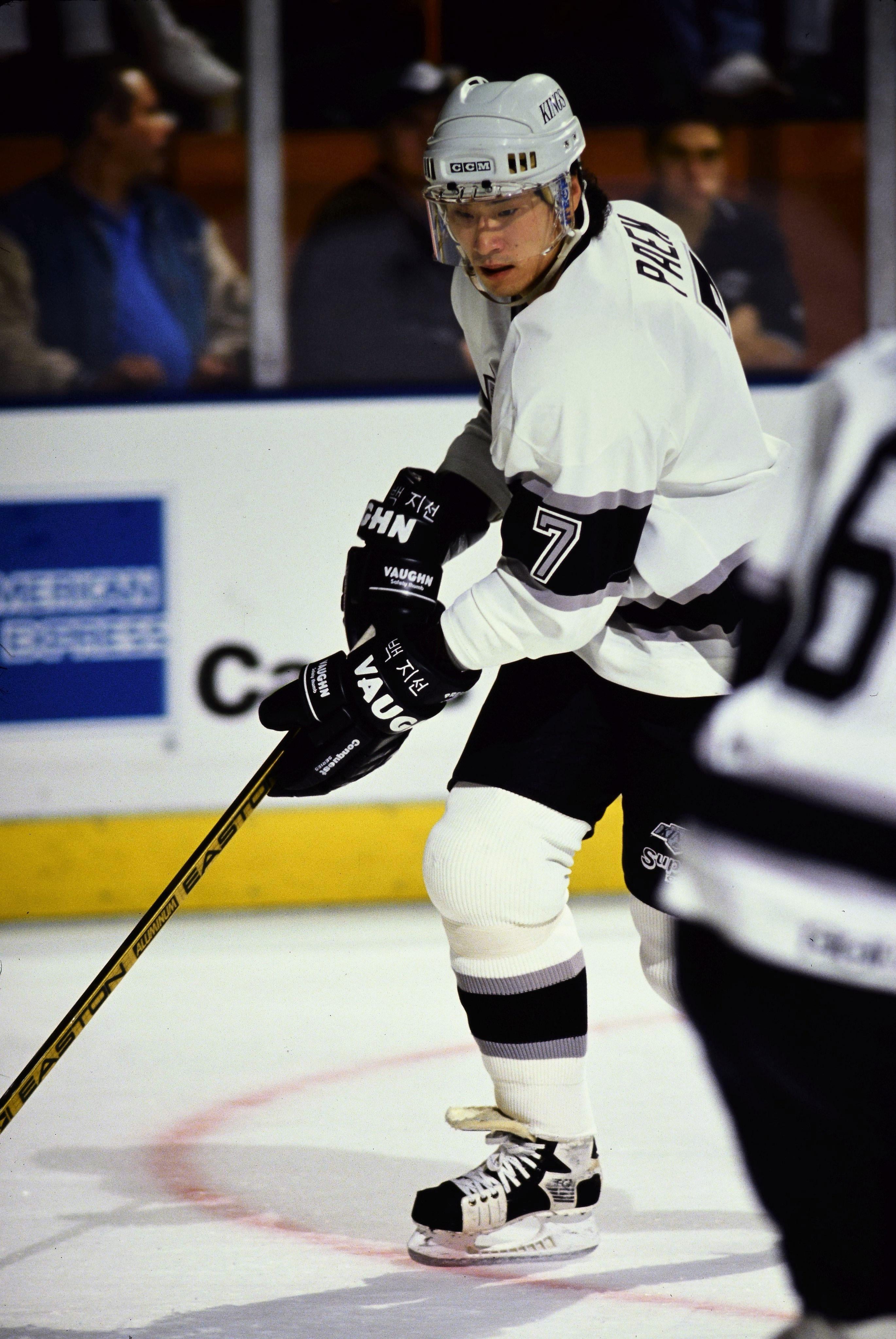 Pictured: Jim Paek, who was the first Korean-born player in NHL history. Paek won two Stanley Cup championship rings with the Pittsburgh Penguins, and was traded to the Kings in 1994.