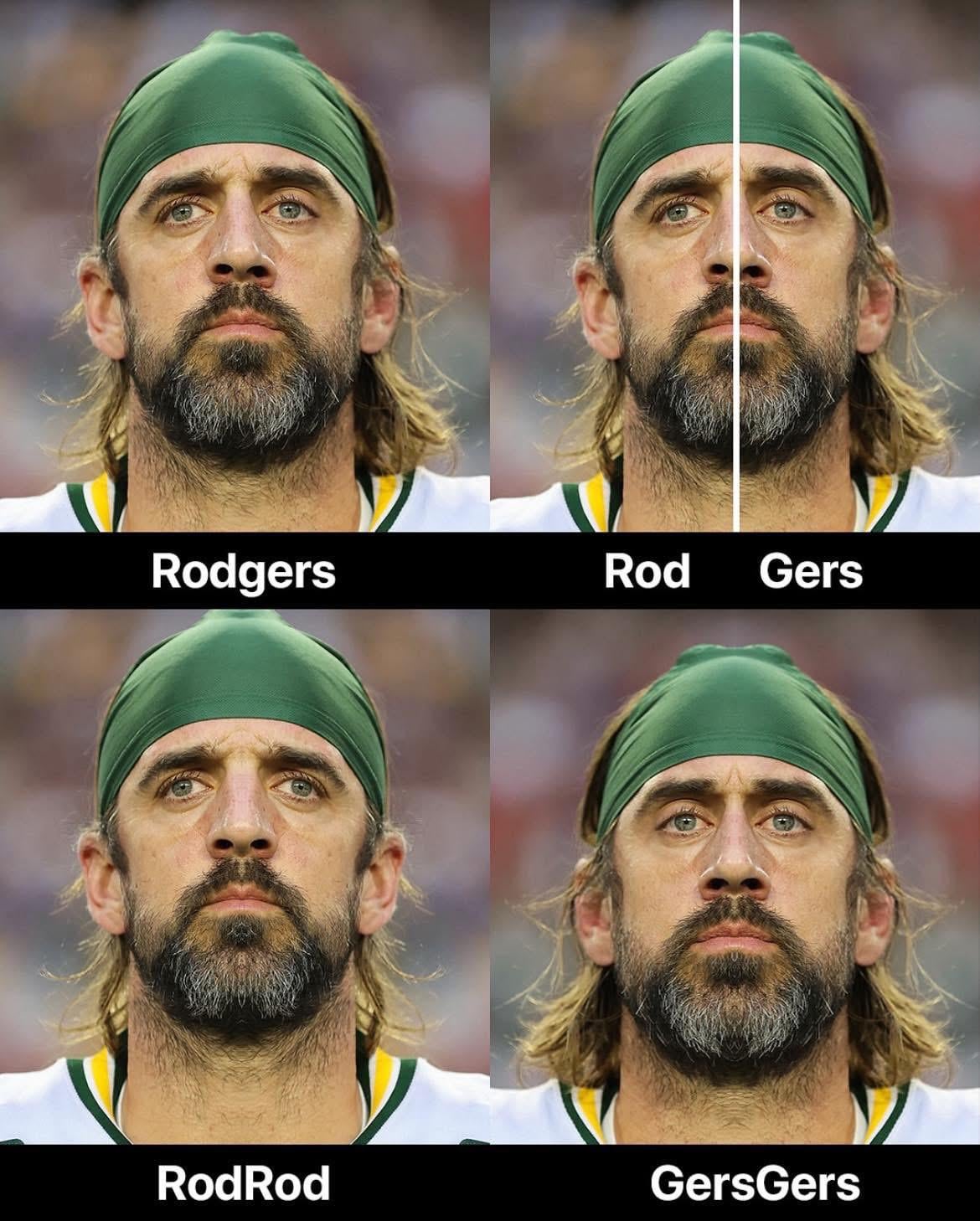 Rodgers is cross eyed? His left eye is pointing to the right and gis left eye us forward