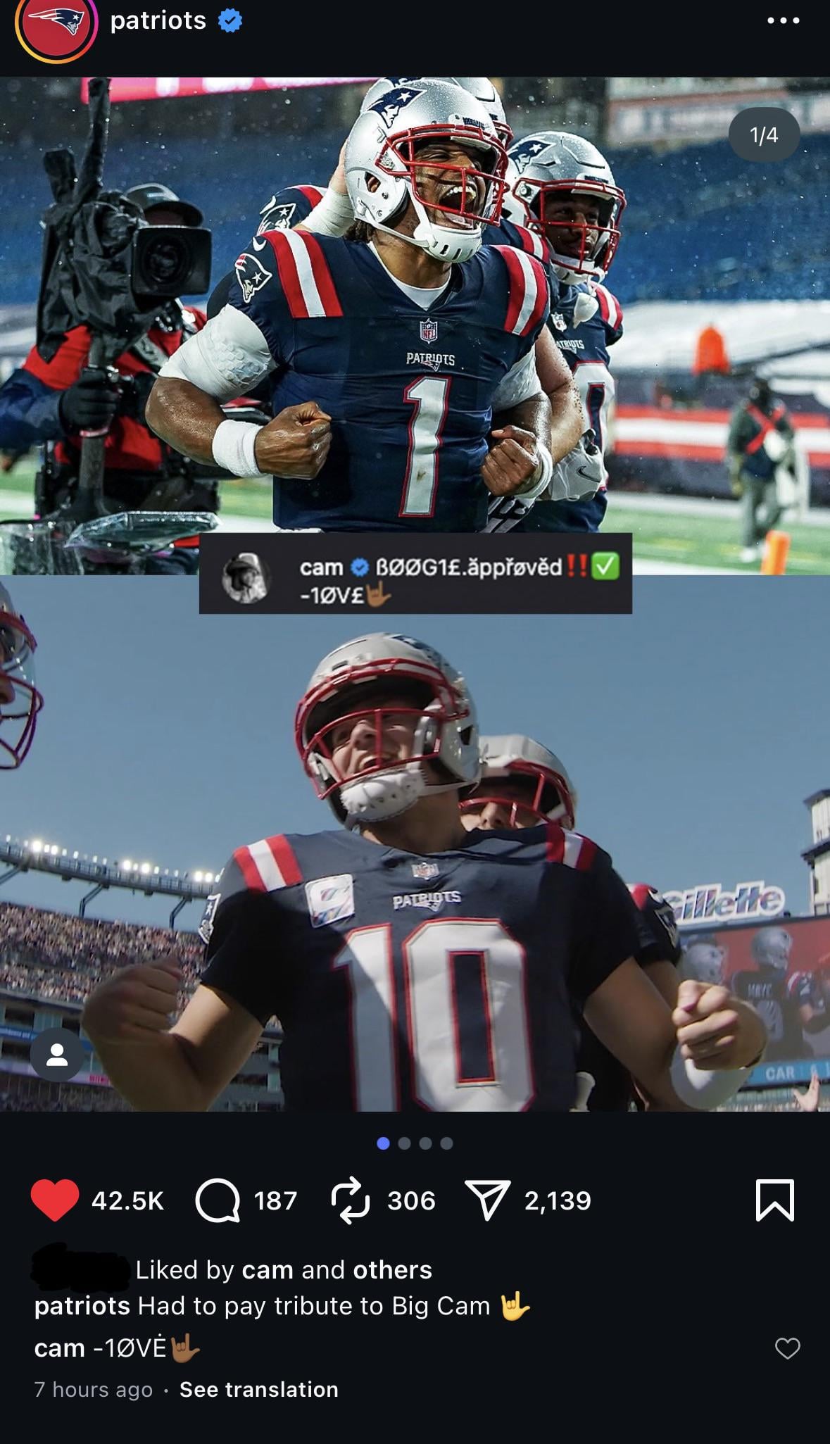 I wish we had him ring the bell Sunday, would’ve been cool to be there for the two teams he played for 13 comments I think Panthers fans have been through enough I think that would break them if Cam showed up for us to do that lol That’s sweet. Patriots legend playing only 15 games? Drake then responded “Love you too, Cam”. But in a way only Cam could understand “&$~#%}}}{*!!*+[€•¥” lol pats legend I wouldn’t title or say “patriots legend” patriots legends would be , Brady, vrabel, brushci, gronks, Seymour, Harrison, etc etc.. Dude’s still rocking those excentric letters, incredible Clearly we now need a player with the number 100 to do it next I still have my Cam Pats jersey. What a time. Legend? Cam wasn’t great here, but still a cool dude I still wish cam worked out better with us I was a big fan of Cam, still am, dude was a baller, stoked he played for the Pats even if it didn’t work out Leave a ReplyYou must be logged in to post a comment.