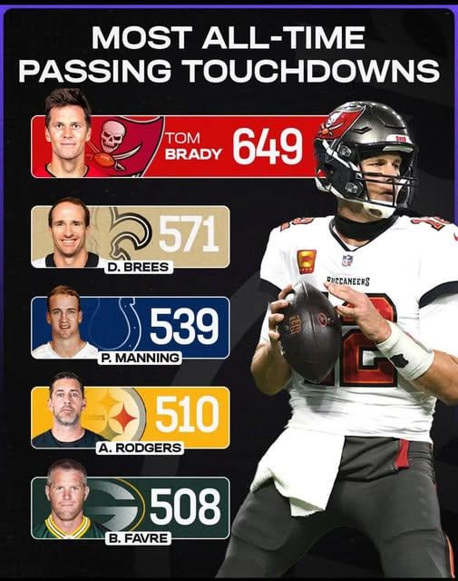 You can’t average it out and say “well if Brees played as many as seasons as Brady then he’d have more TDs” because that’s not a fair argument. Not least because Brees was struggling with his health in his last couple of seasons, whereas Brady went on stronger for longer.