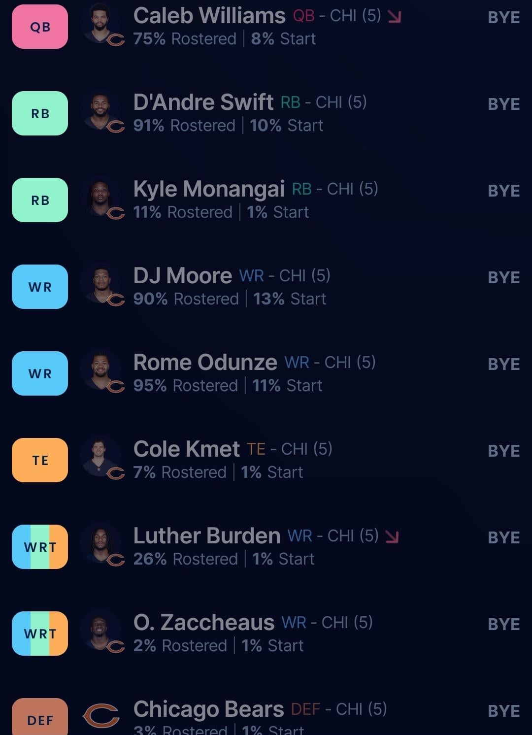 2. I’m most surprised by the kmet numbers. Yeesh I always felt he was at least middle of the pack but damn nobody has him on their teams lol