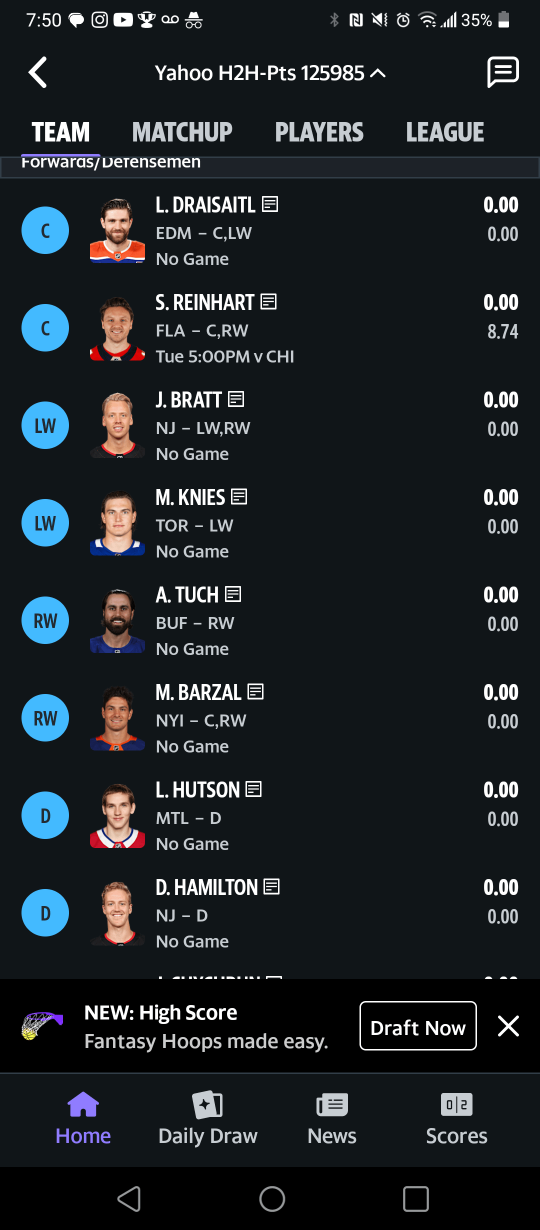 I got Bratter, Dougie, and Luke. Wanted Quinn, Nico, or Jack but I had the second pick so I had to go Draisaitl