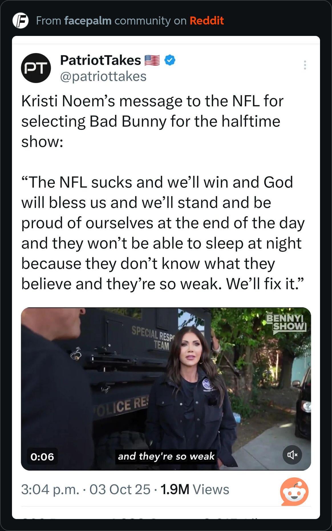 Translation: Kristi Noem is a dumb bitch that has no idea what’s she’s doing and has almost zero political talent beyond what her plastic surgeon tried to give her