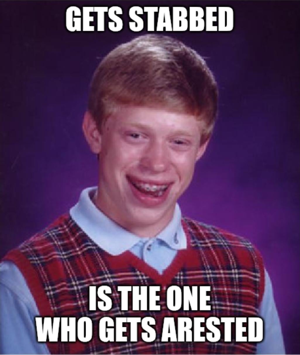 This is almost as bad as the butt fumble 13 comments Holy fuck I havent seen this meme pulled out in a while!  It’s like shooting yourself in the leg at a club and getting arrested  It never gets old. Lol that is just funny as hell Butt fumbled another career… Almost What happened? LoL 2012 memes are back You can still be a dominant aggressor before being stabbed in self defense Throwback meme is crazy work. I fucking love it. Maybe don’t start shit? #GUT FUMBLE Leave a ReplyYou must be logged in to post a comment.
