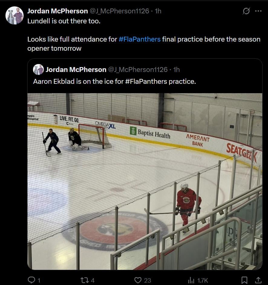 Practice lines were: Verhaeghe – Bennett – Marchand