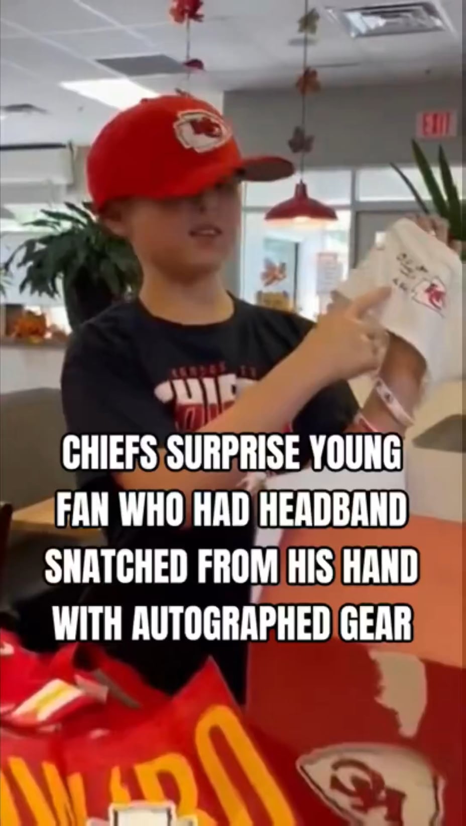 [Farzin Vousoughian] Joey, the young boy who had Patrick Mahomes’ headband snatched from his hand, was sent gear from the Chiefs signed by Mahomes