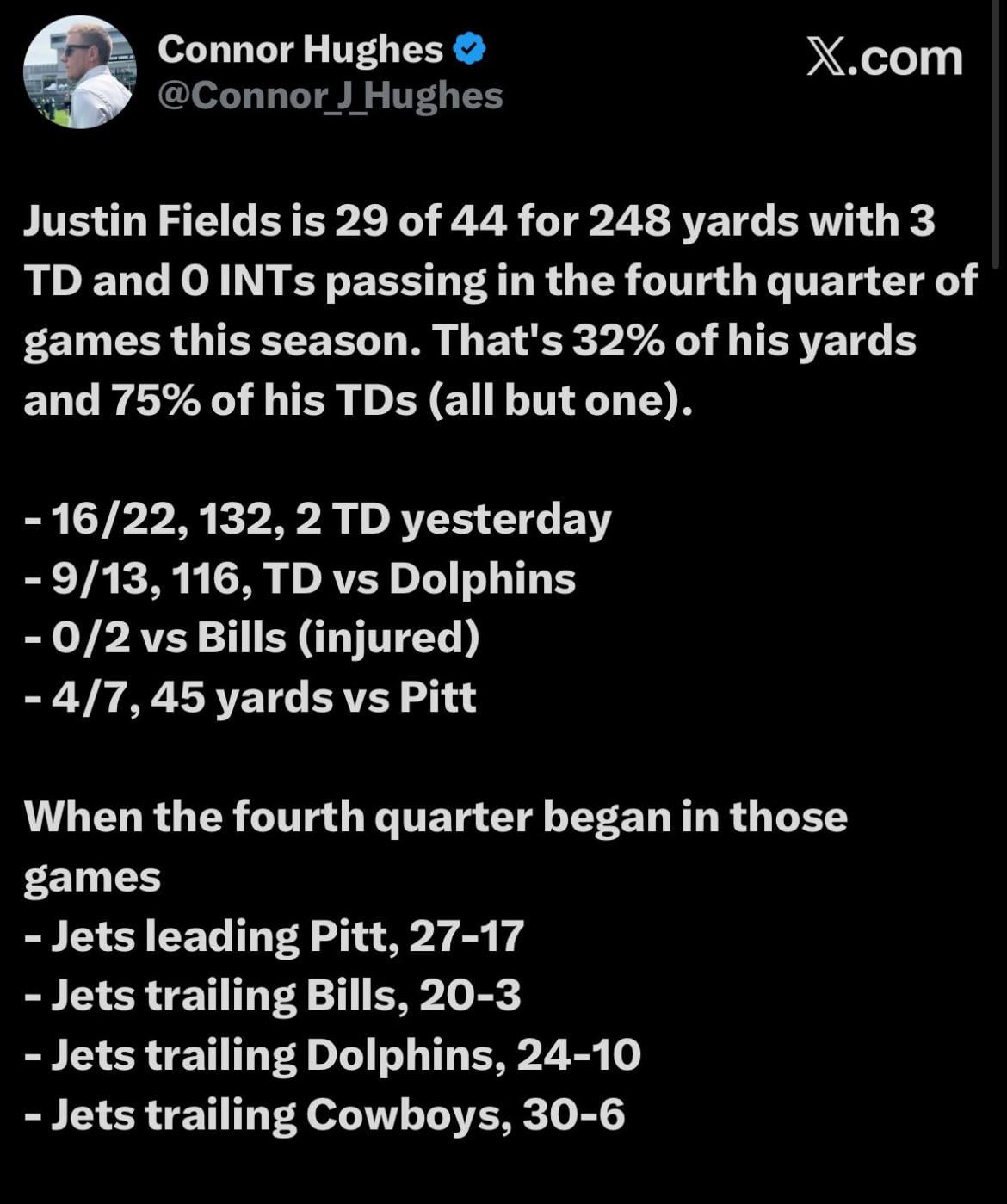 Can the Jets spot opponents 20 points to start? Fields will be a HOFer by seasons end.