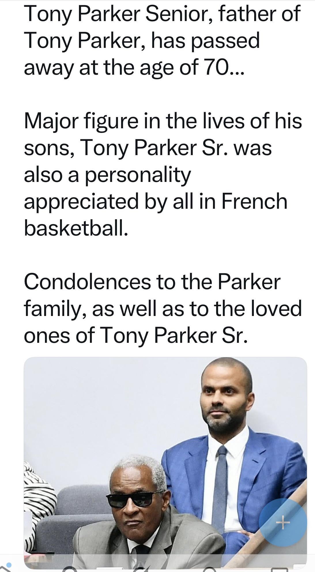 Tony Parker Sr. has passed away.