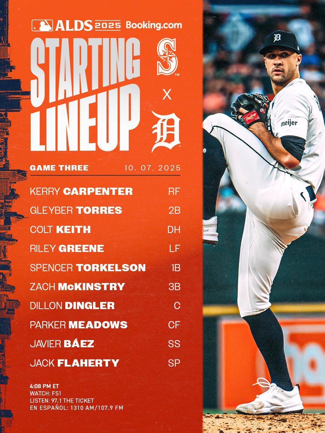 Detroit Tigers’ starting lineup for game 3 of the ALDS against the Mariners! First home game of the playoffs!