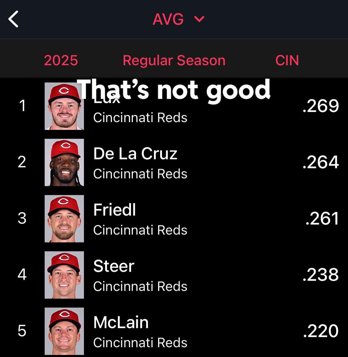 Hey guys you know the reds season is over now it’s there stat time, let’s begin with Gavin Lux good player overall he was traded from the dodgers to the reds and he has preformed well with the reds and has a .269 batting average on the team but not to be a critic but I’m pretty sure that a .269 BA is not that well but we need to preform better this year as a reds fan