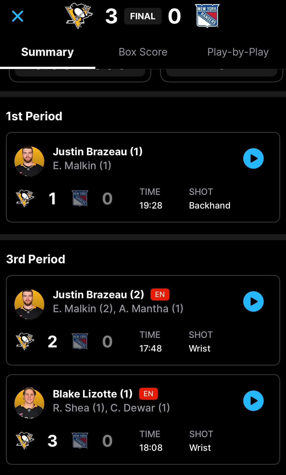 The first was a beaut, backhand forehand right in front of the net, with an assist from…. Evgeni Malkin. So yeah, if he were playing with Malkin quality players in Mn maybe he would have had more points. But I’m not sure that’s what we all would have wanted 🤔