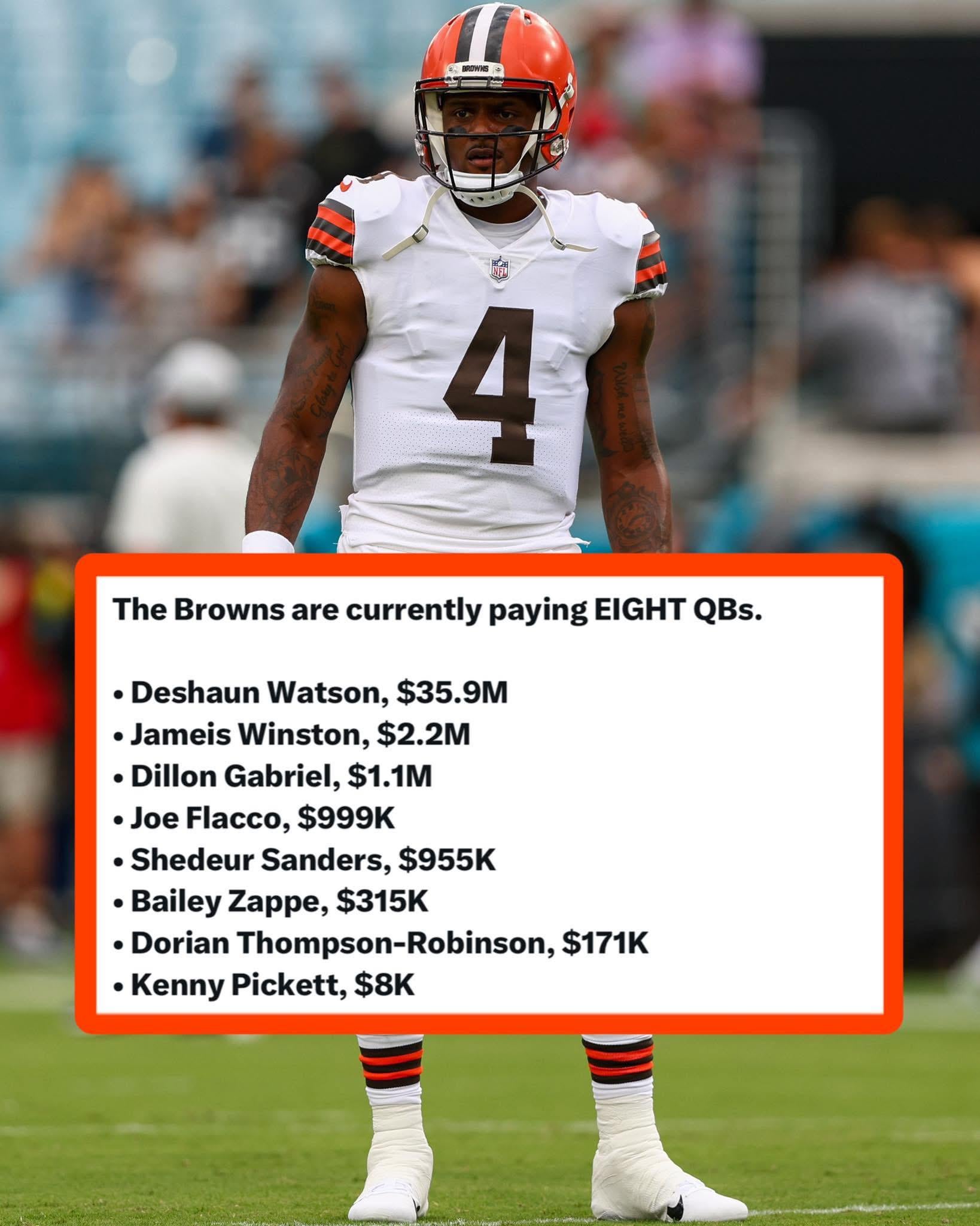 Shedeur Sanders’s salary is the decimal point for Deshaun Watson.