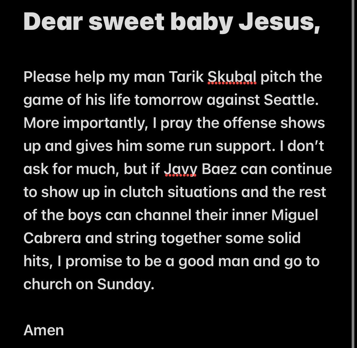 My prayer for tomorrow… 26 comments Could you have at least name dropped Carp in the prayer? The man has a lot of friends. Amen Dear 8 pound, 6 ounce, newborn infant Jesus… Hallelujah https://preview.redd.it/hpr8kfry86uf1.jpeg?width=227&format=pjpg&auto=webp&s=6388dc983256b4b49d6f1c8cef2f6f3ef3d6bdd4 Lighting up my virtual candle. From your keystrokes to the baseball gods’ ears. Gonna go sacrifice my chickens now Inshallah brother 🙏 Nobody keeping Skoobs from a win 4 times in the same season. Amen ☝️☝️ Tork bomb grand salami for the walk off https://preview.redd.it/ig9a05o6c6uf1.jpeg?width=1024&format=pjpg&auto=webp&s=3bcaa0d2dbffb6e23b89086de916a1f1bacbba10 Written in the notes app for quick deletion just in case. https://preview.redd.it/ximhp0unc6uf1.jpeg?width=640&format=pjpg&auto=webp&s=9635373fb0513f6aac43c45a3ea7796bb7c0c409 I don’t care which team wins tomorrow. As long as one of them beats the shit out of Toronto! Like really beats them like a red headed step child! -Signed A Yankees fan. Jesus I promise OP will go to church if you let the Tigers win Early runs would be awesome too! https://preview.redd.it/y7i05eowg6uf1.jpeg?width=720&format=pjpg&auto=webp&s=23a75e5abebd109c8fabfff2f70e6488dc03aabc And by church on Sunday I mean watch the Lions game. Amen.  https://preview.redd.it/isahmty2j6uf1.jpeg?width=1242&format=pjpg&auto=webp&s=2a9c4c1794eb42e17ad1772cb04250f7a83d174a Im not a praying man, but I can get behind this! Amen! add a few specifics – like 14 homers for us ! I just decided I am no longer an Atheist. I just need one tork bomb this postseason Amen Leave a ReplyYou must be logged in to post a comment.