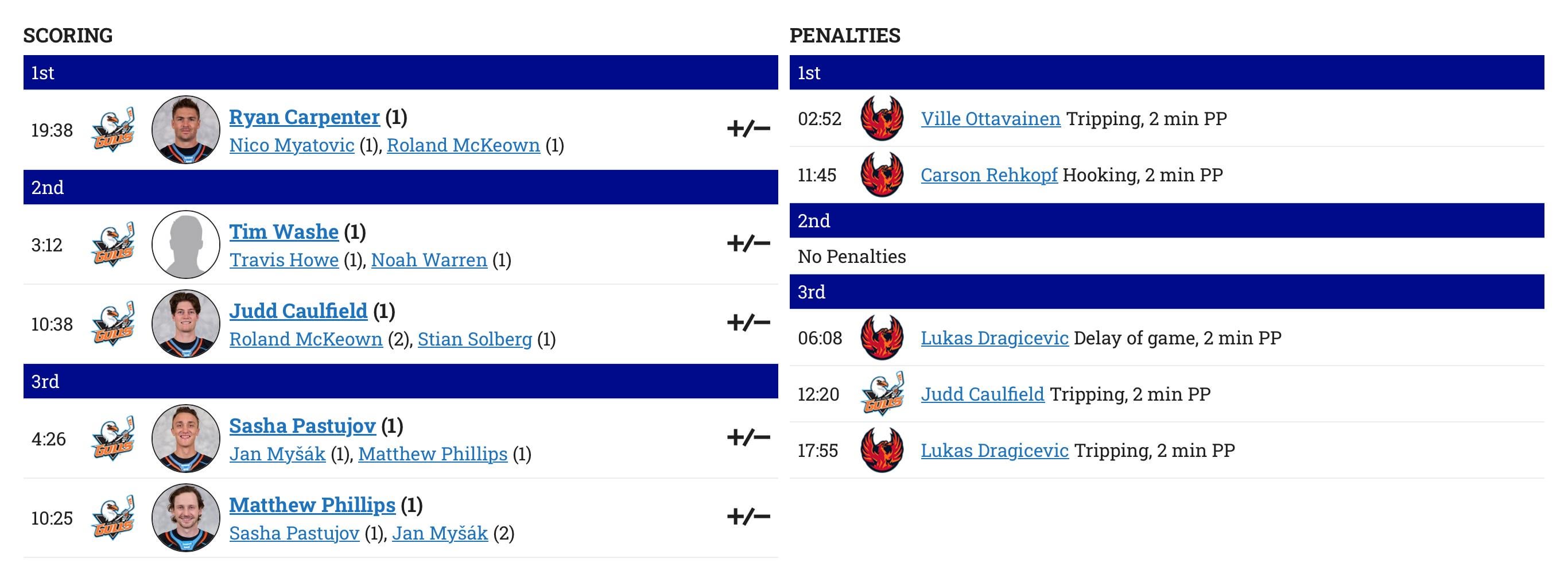 In their season opener, Gulls @ Coachella Firebirds which is the Seattle Kraken‘s AHL affiliate. Ville Husso with the shutout. (so glad he passed waivers). If you’ve followed Ducks preseason you’ll remember some of these names. Tim Washe who I’ve been high on scored a goal. Short King Phillips continuing where he left off after preseason.