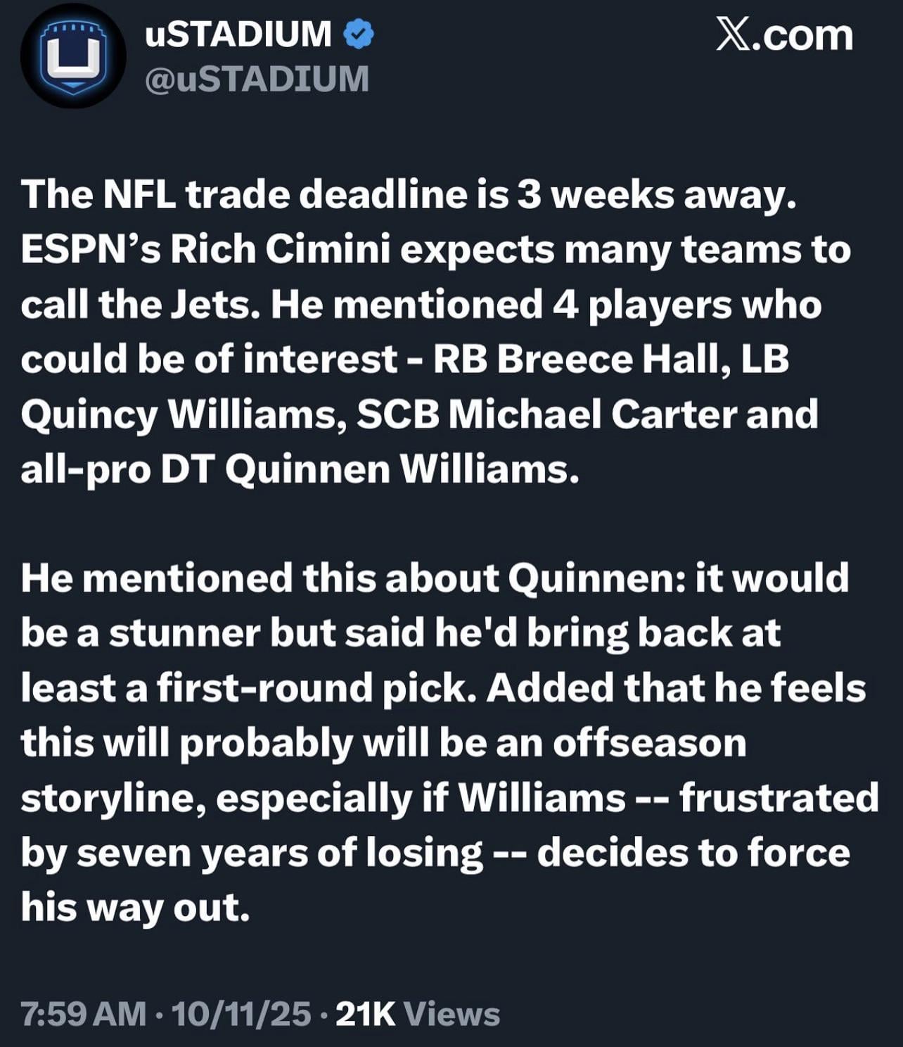 Random x page reporting about Rich Cimini reporting about trade rumors. Man I hate sports “journalism”