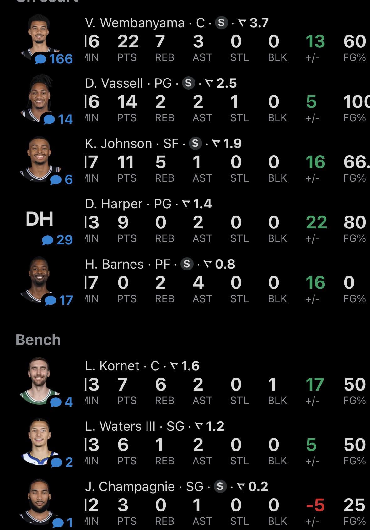 For as sloppy as this preseason game has been this makes me happy. Let’s see if they can keep it up during the season. 4 comments Wemvp DH … Rook doesn’t even get a profile pic. First preseason game and DH immediately led the +- efficiency 🤣 What app is this? Leave a ReplyYou must be logged in to post a comment.