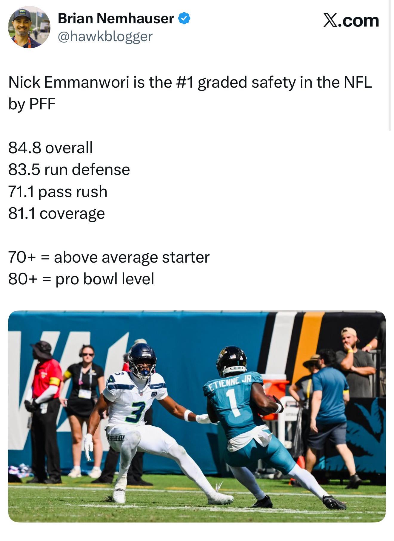 [Nemhauser] Emmanwori is the #1 graded safety in the NFL