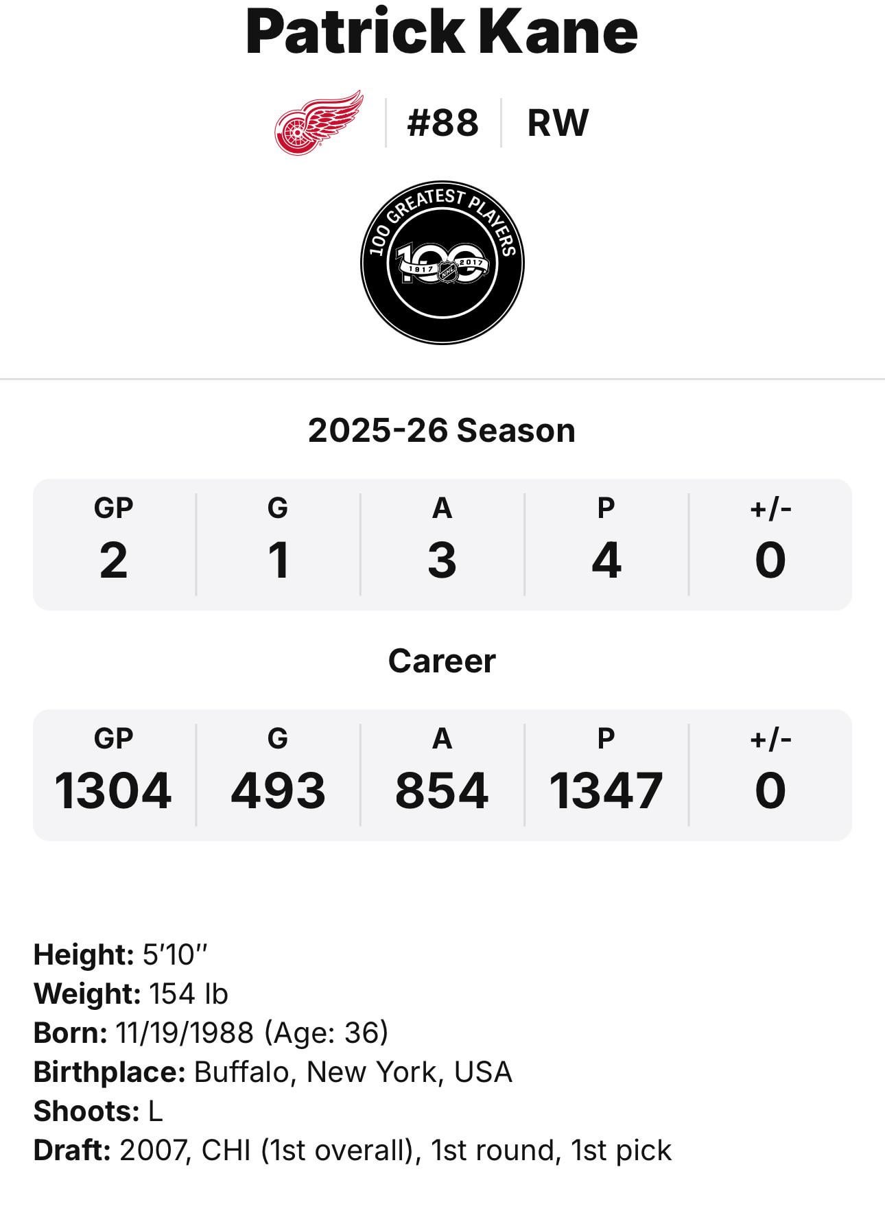 Hockey reference has him at 154 as well couldn’t find any other site that said this
