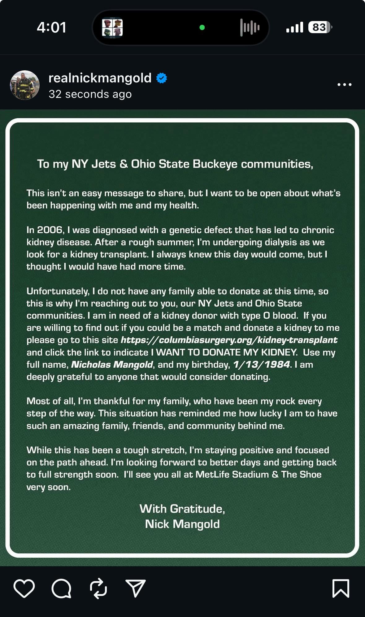 That being said fracturing one of my kidneys in 2001 and also being an alcohol coping Jets fan would not make me a donor 😞.