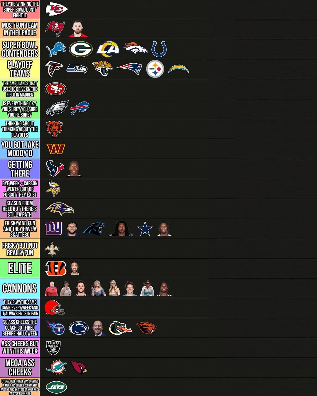 Fuck Philly but the Eagles are objectively a Super Bowl contender. Ranking them below Playoff Teams is wrong and heavily biased. This isn’t a good tier list.