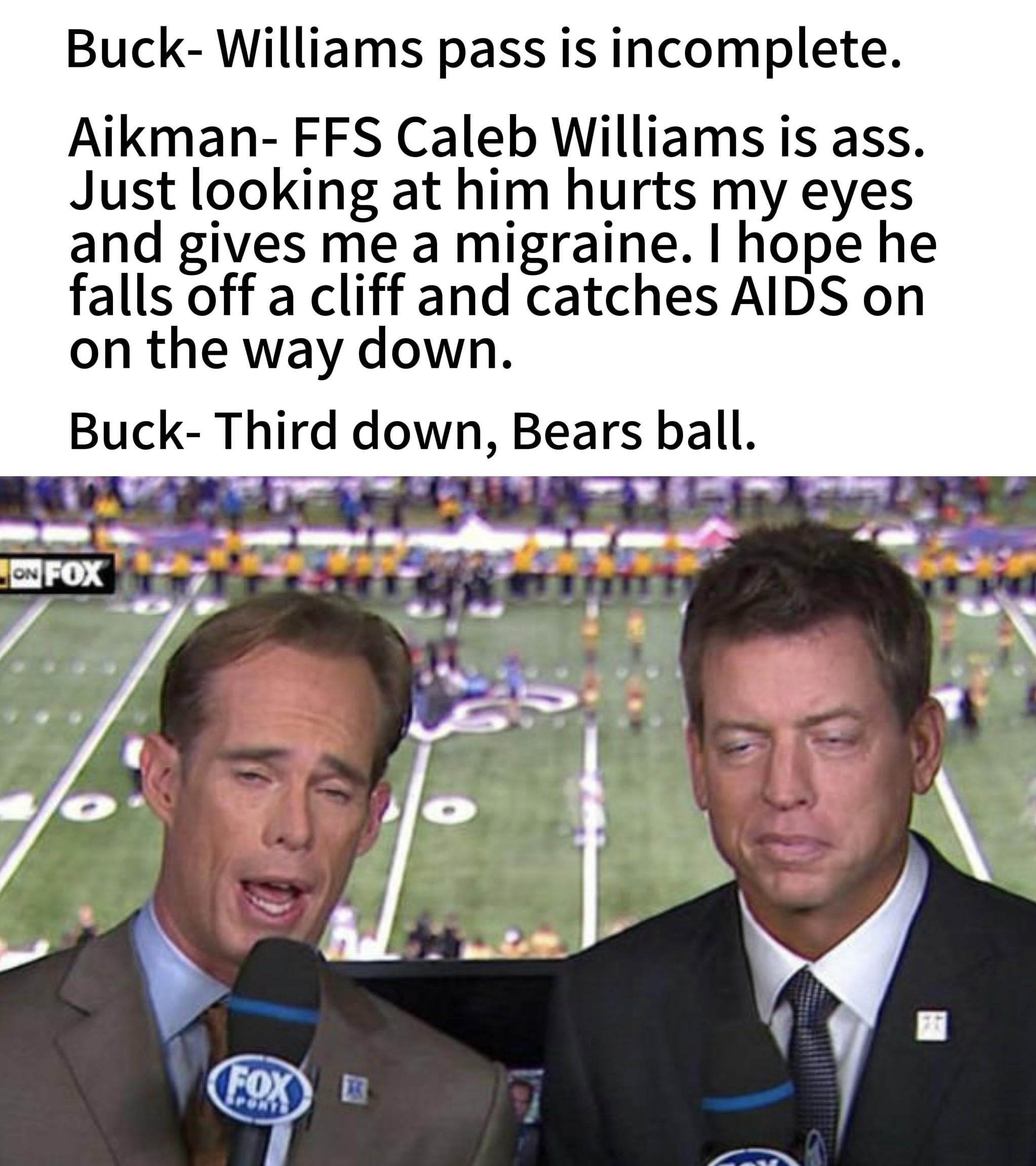 “You know Joe im fucking suing Caleb fuck that wannabe quarterback ass I hope he swandives into a woodchipper and maggots grab every fucking coin out of his rusty asshole.”
