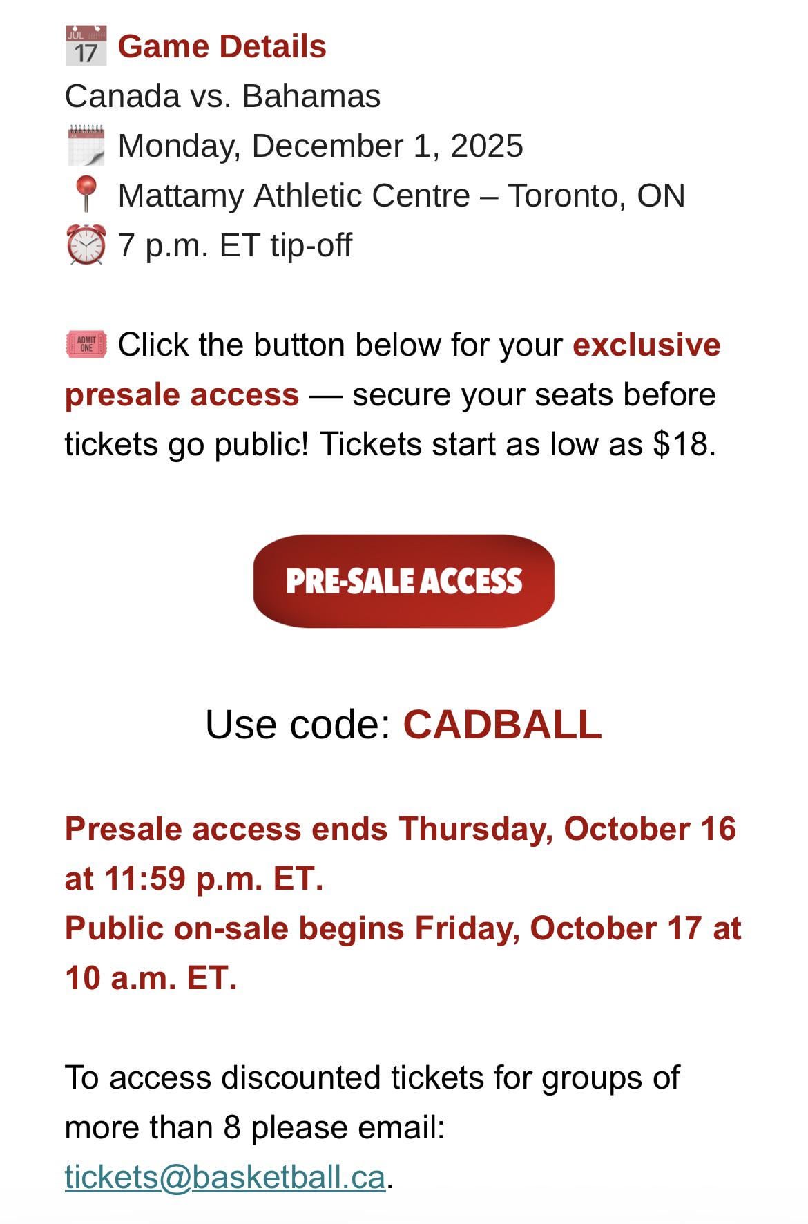 Team Canada FIBA World Cup Qualifier – Pre-Sale Tomorrow Leave a ReplyYou must be logged in to post a comment.