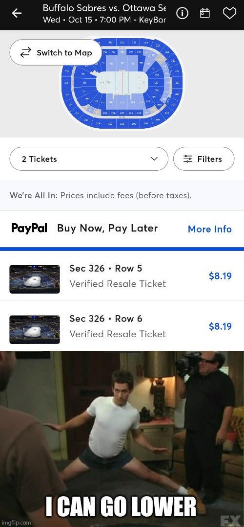 It’s more expensive to go see my local Junior B team than it is to see a Sabres game lmao