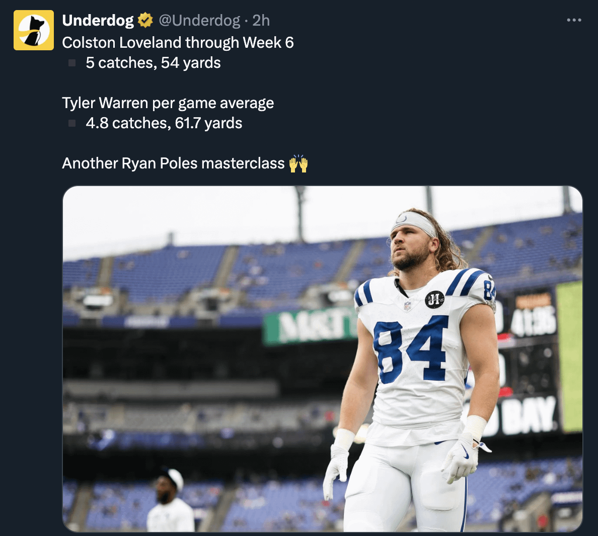 6. lol, we didn’t even need a te so I don’t know why we would care. Warren would have got about the same production in chicago. IYKYK.