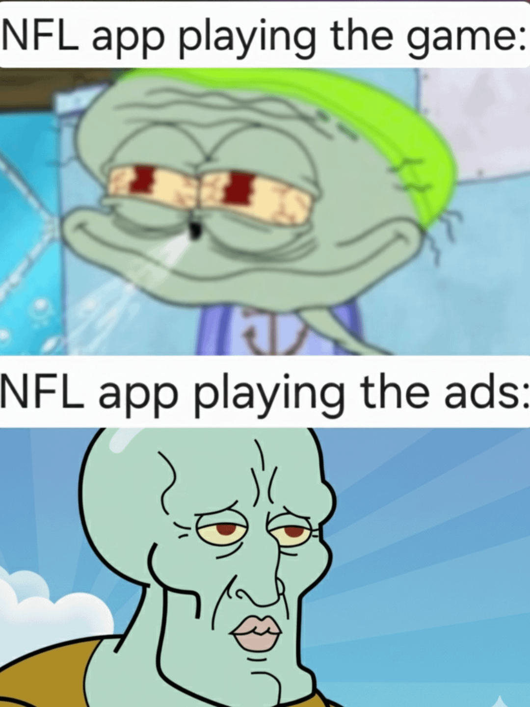 The NFL app is absolute moldy dog poop. So slow and laggy it makes TNF feel snappy.
