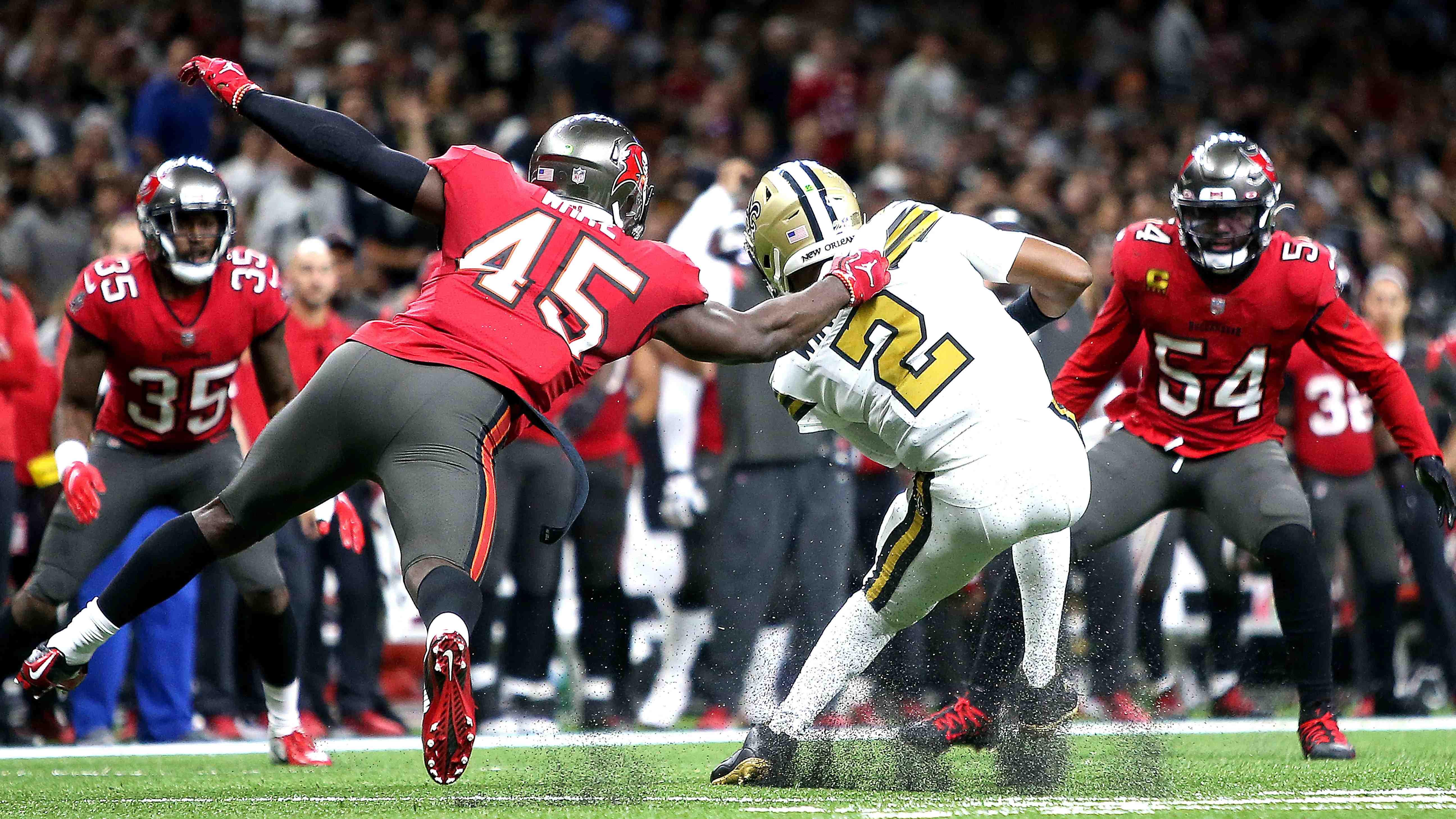 Topical? Not at all. But it's on my mind, so here we are! If you are lucky enough to have forgotten, this picture shows the moment Jameis was horse-collared by Devin White and had his ACL torn. This occurred in week 8 of the 2021 season.