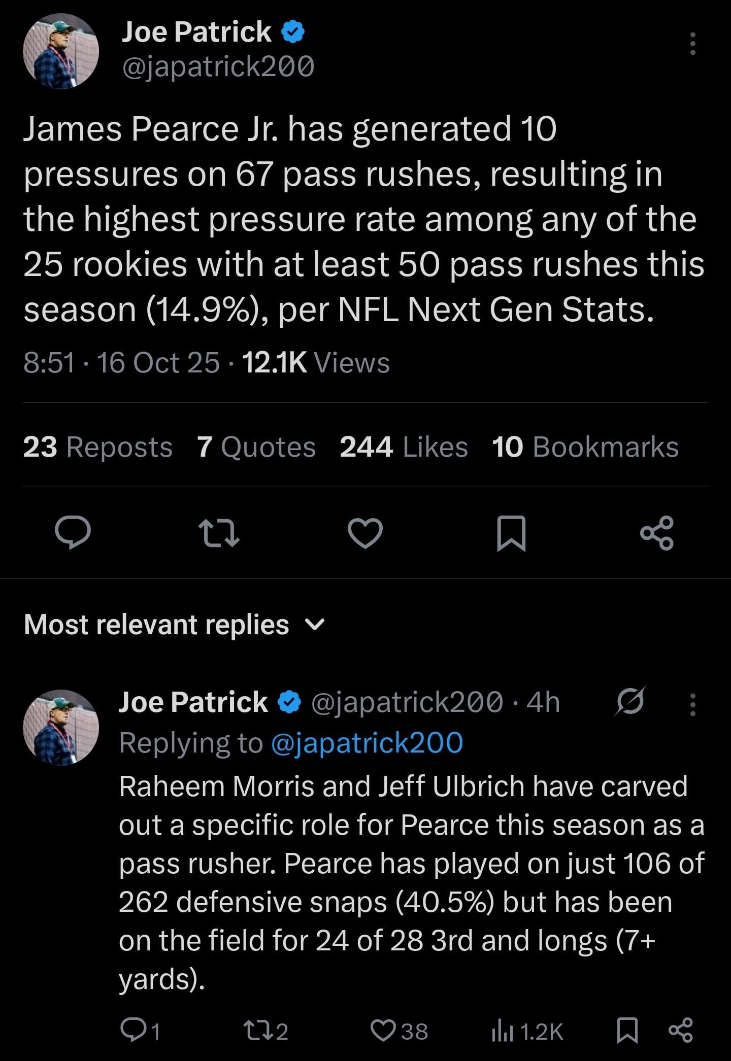 I haven’t looked closely enough at his run snaps to see how effective he is at setting the edge or getting off run blocks. He’s still got plenty of time to grow into a complete player.