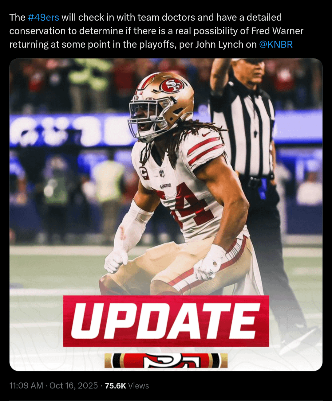 Hope this report is right, and we run into you guys again in the NFC Playoffs with both teams fully healthy, for the game as it should have been.
