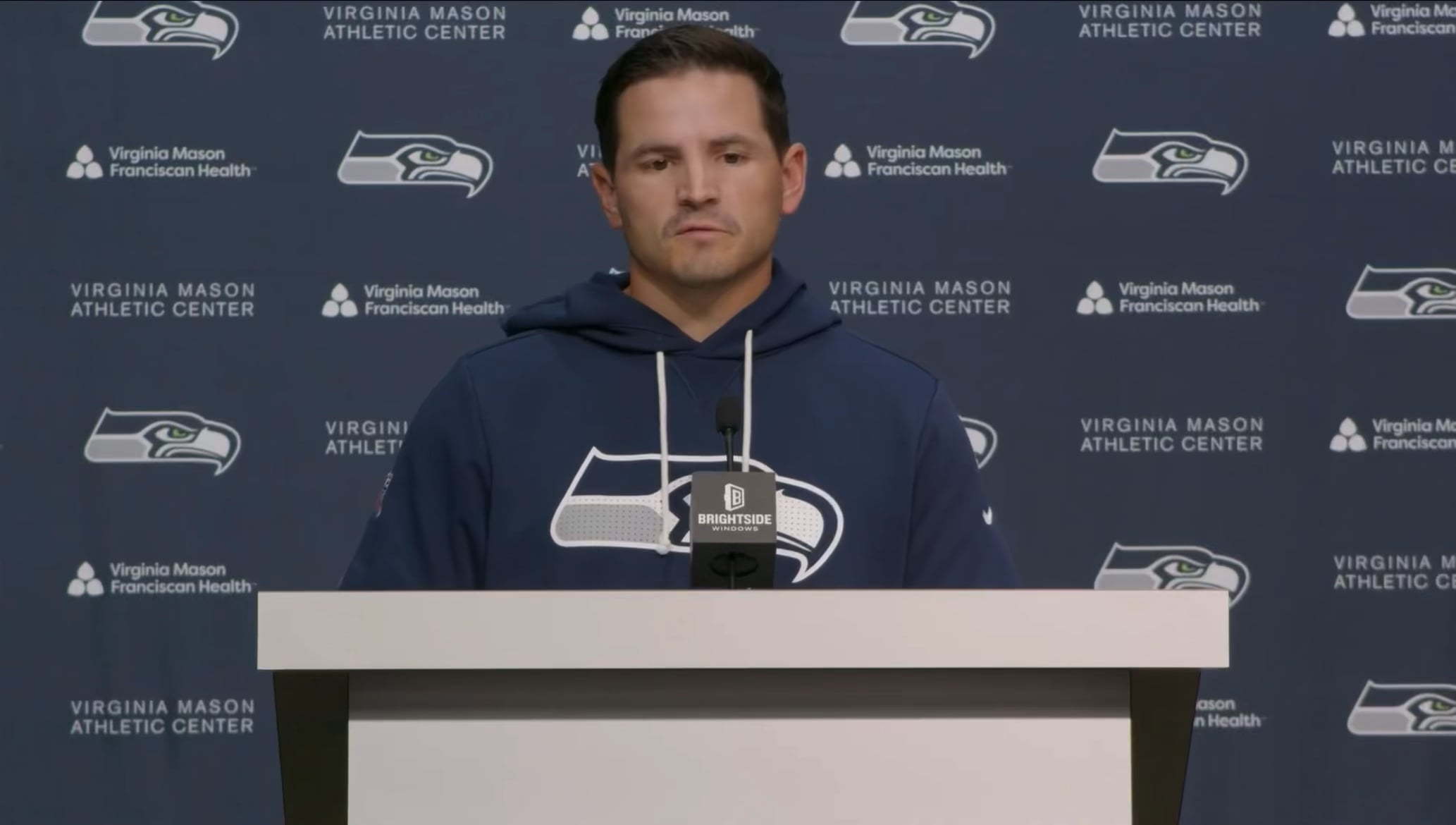 Mike smiles as he gives practice participation status on Witherspoon, Love, and Riq Woolen