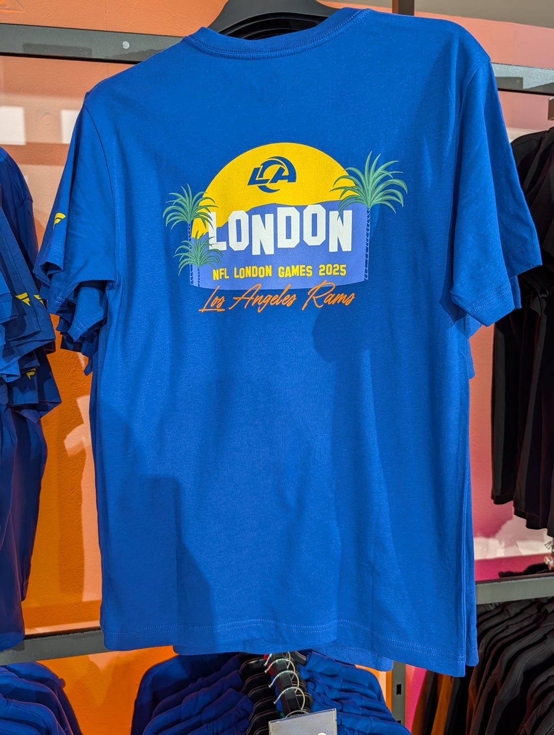 I heard the merch lines were hours long at the games in the UK. Got an email about this shop. We walked in when it opened and nobody was there but the cashier said there will be a line to get in later in the day and they run out out of certain items. LFG Rams!!!