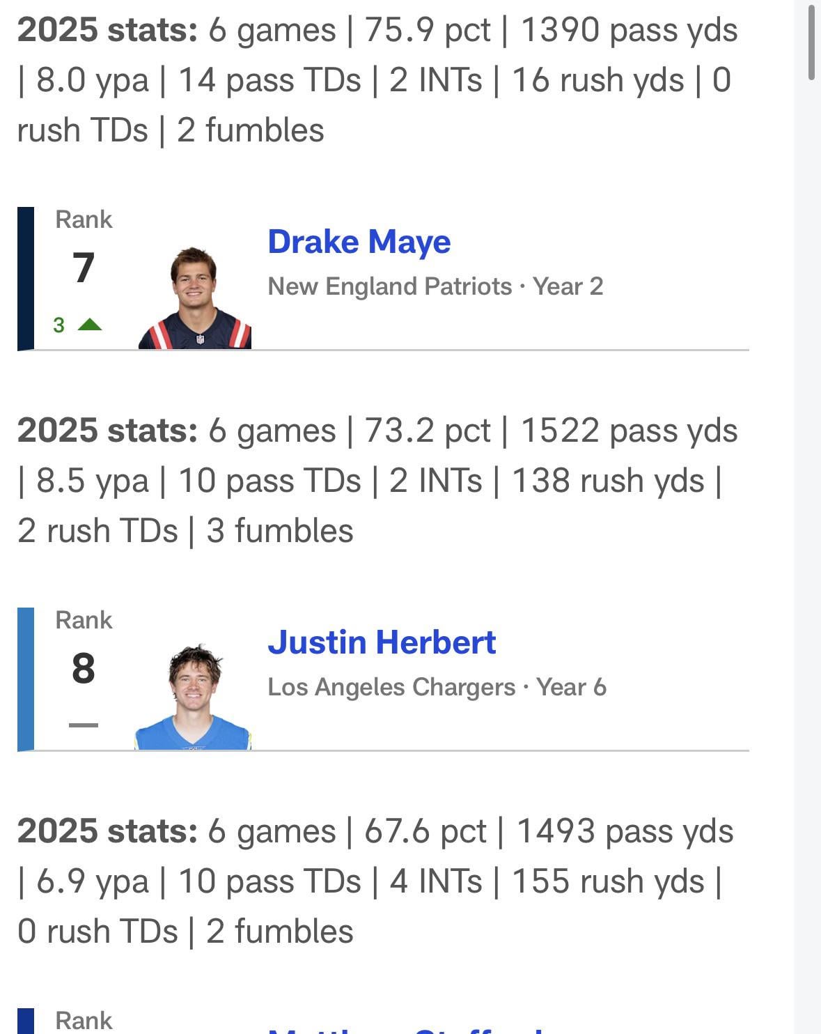 The NFL ranked Drake Maye as 7th in the NFL, but he’s played 4 less seasons than the next closest, Justin Herbert. Maye might just end up beyond anybody else in a few years.