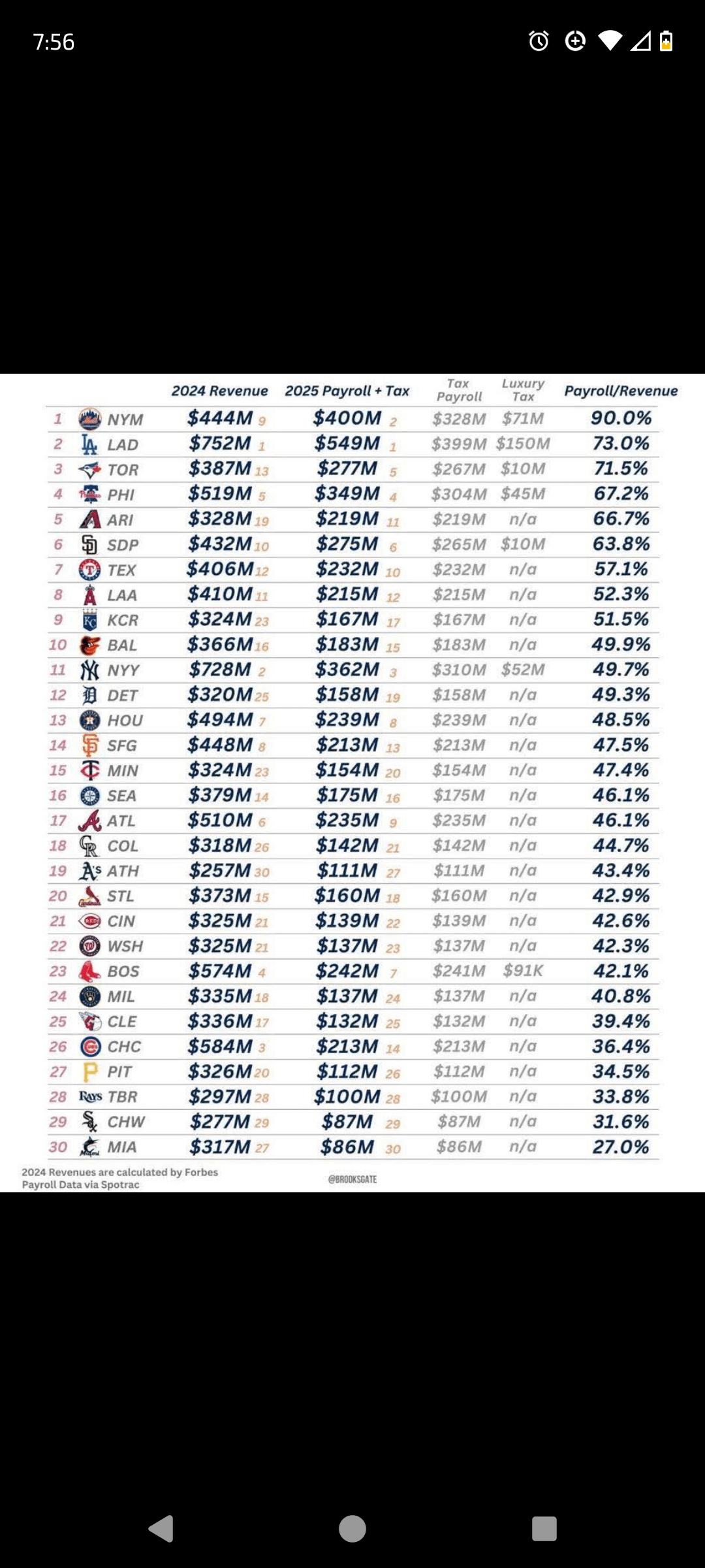 Just keep in mind on revenue these are only estimates since teams don’t need to publicly disclose what they are making. If they did then fans would really have a leg to stand on when talking about under-spending.