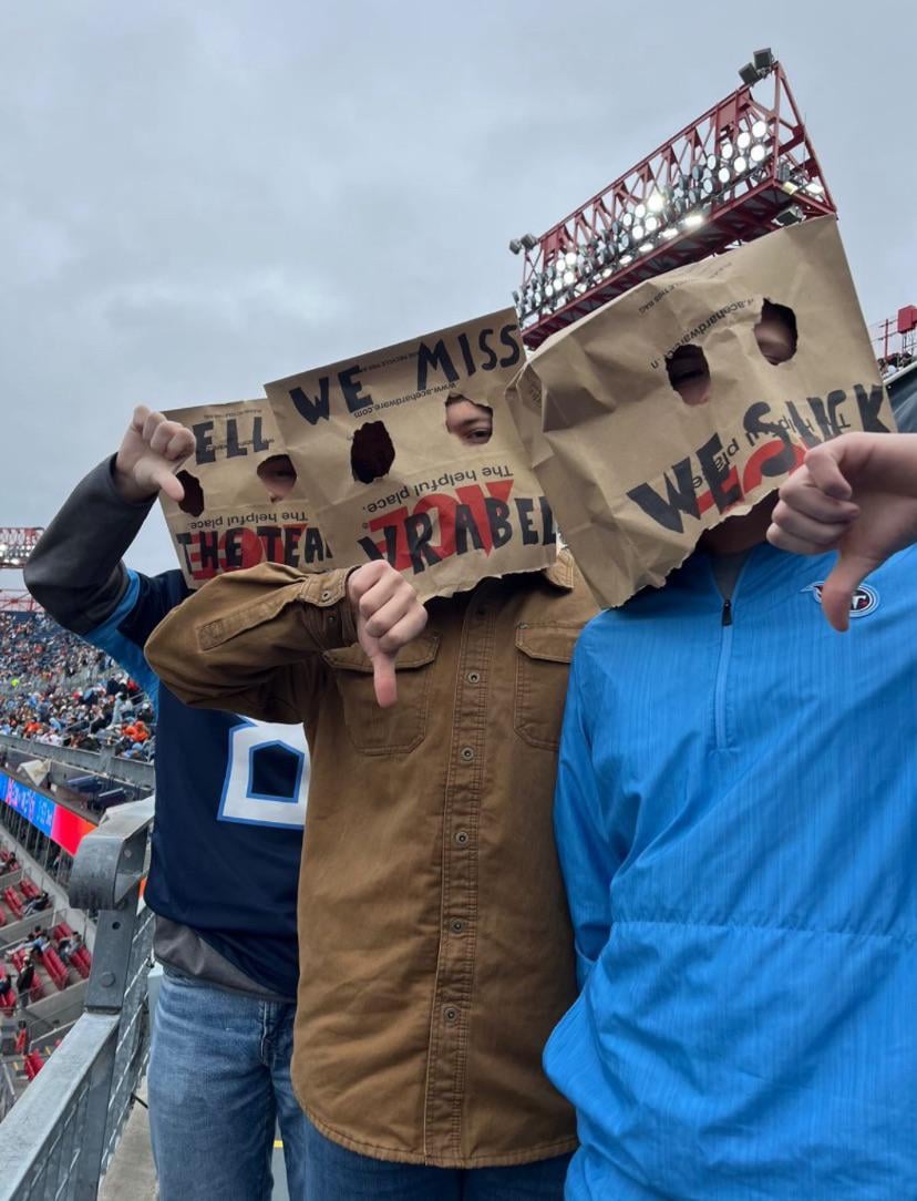 I mean, the whole thing is a mess, but now that they finally made the right move, to me, this feels like the worst week to wear the bag. I mean, we’re probably getting killed this week in extremely embarrassing fashion, but there’ll be enough people in the crowd rooting against the Titans. Might as well show whatever support you can muster for the players and interim HC.