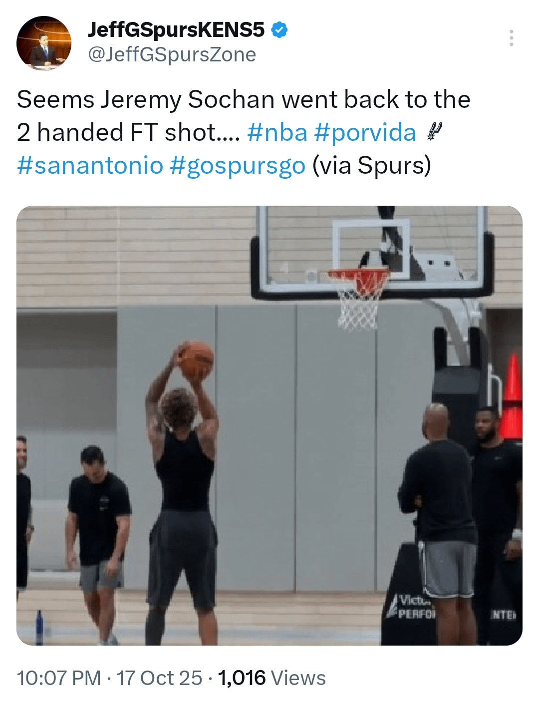 It might be “better” to do 2 handed free throws but damn I’m gonna miss how unique his 1 handed FTs were. If nothing else those 1 handed FTs shows he’s a Spurs player through and through, willing to do whatever it takes to be a better shooter.