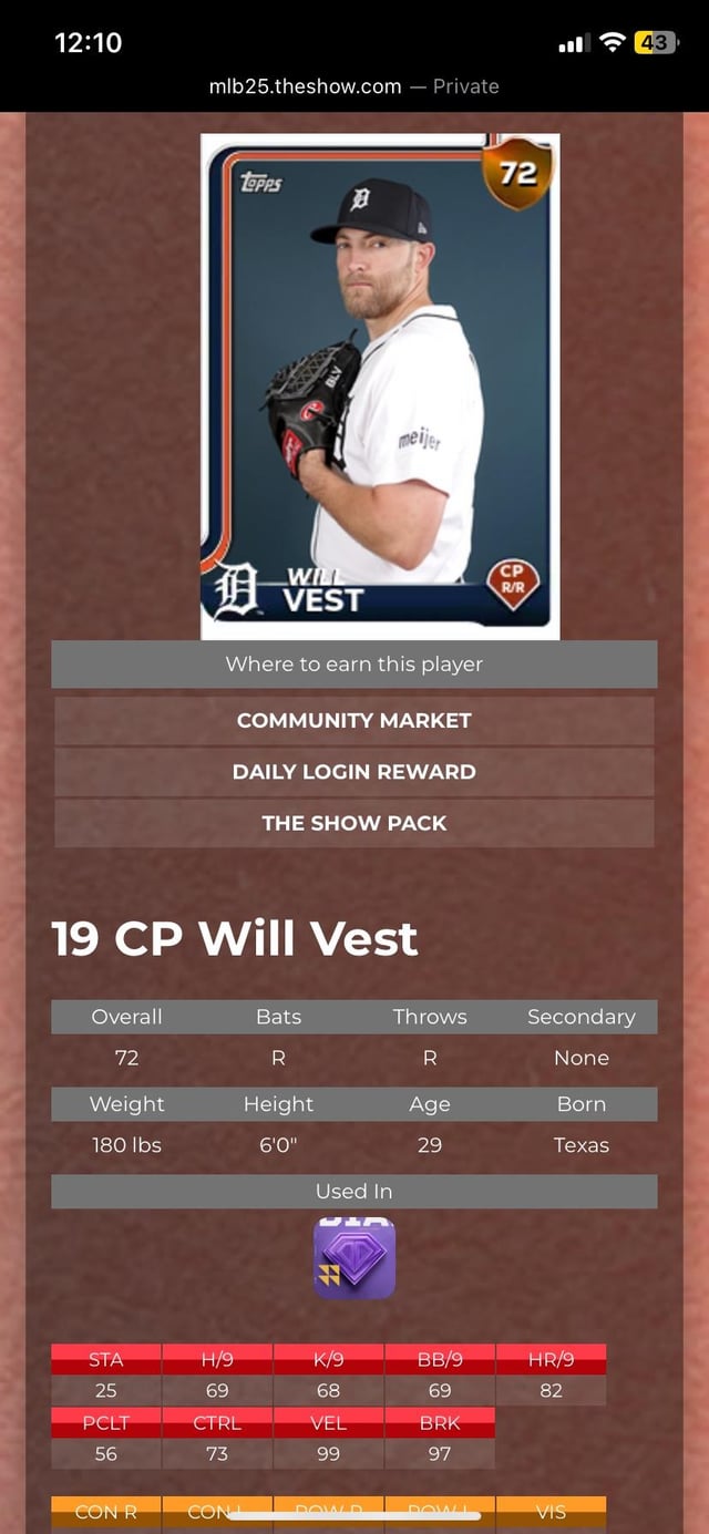 Relief pitchers have lower overall. 1.2 whip is probably an 80. I’m just sad he didn’t get a playoff card. He deserved one.