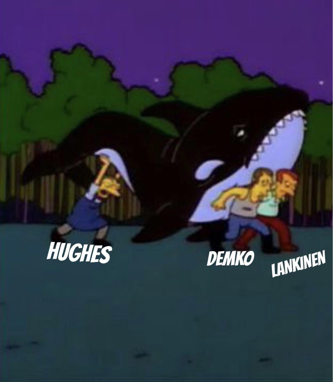 More like just Lankinen and Demko. Hughes hasn’t been hughes yet.