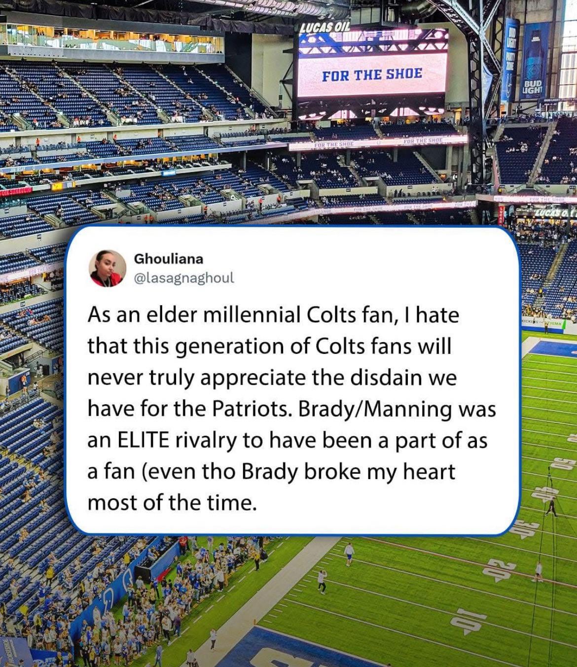 The Pats/Colts rivalry took me through my high school years. I already hate Drake Maye and it has nothing to do with anything he’s done.