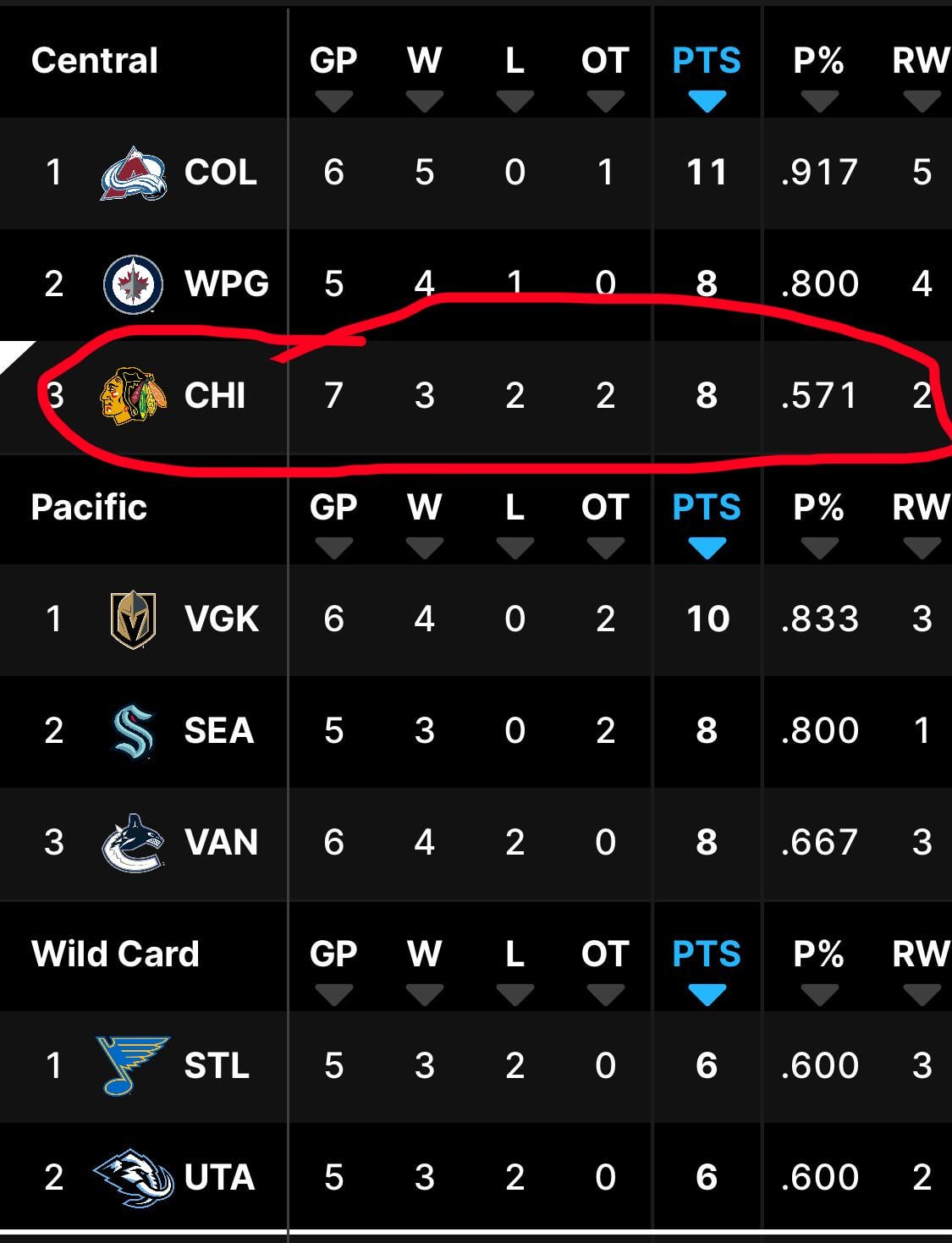 1. Let it be known that, for at least 5 minutes, the Blackhawks held a divisional playoff spot this season (we have since dropped back to the WC after Utah won).
