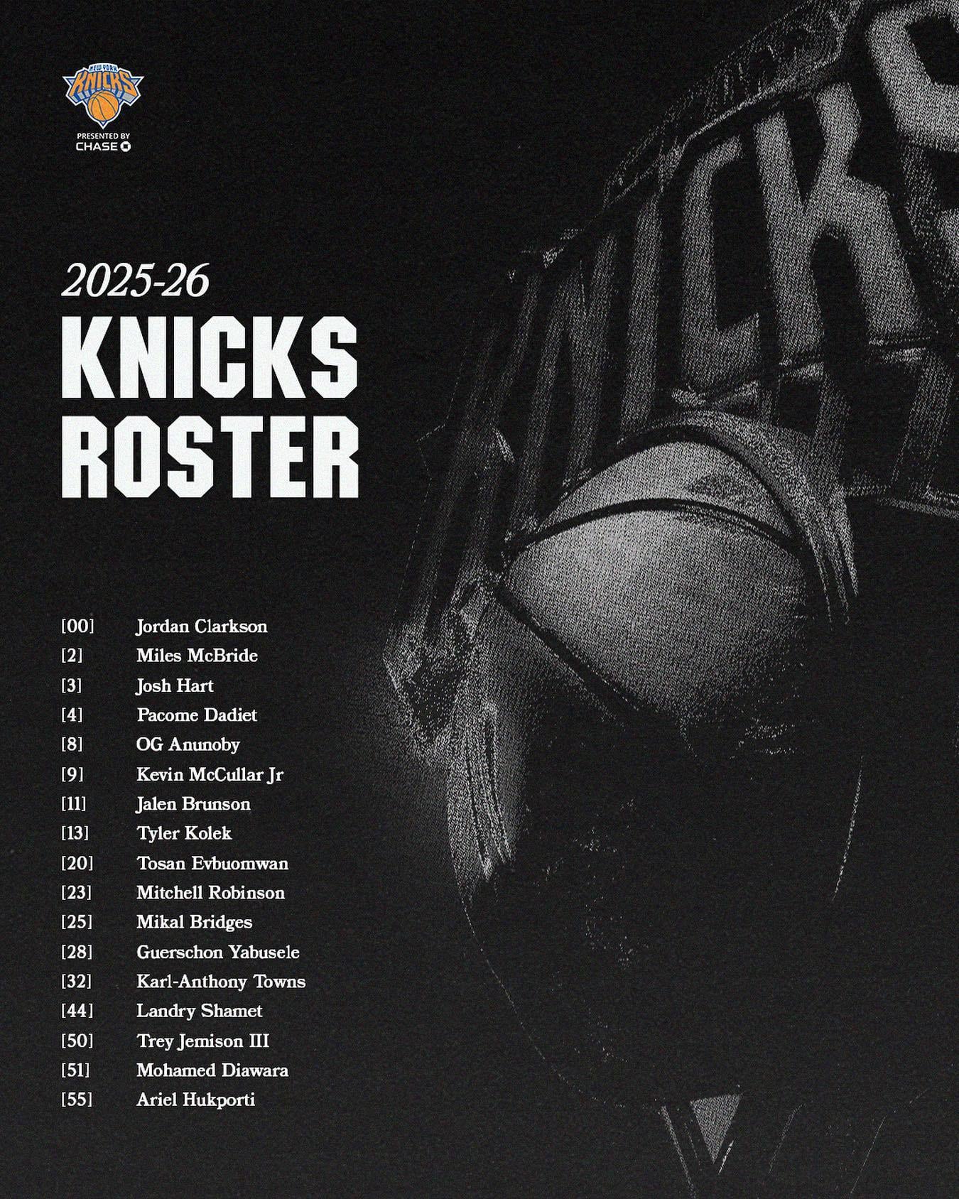 KNICKS OFFICIAL ROSTER! 17 comments Nice, looking solid. Go knicks Damn good team. I don’t know if it’s a championship team but they are going to win a lot of games. Landry! 98-0 Solid af Who was the last Knick to rock the double 0 My nipples are hard Most complete roster they’ve had in some time.  I want to believe and I choose to believe. This is the team to bring us *at least* to the finals. Let’s go Knicks! ooooh we kept jemison LFG Erection Looks like a championship team Congrats to Diawara for making the most of the opportunity  I don’t care about numerical order put JB at the top. #[2025-2026 New York Knicks](https://www.instagram.com/reel/DOzjKSdDZ-W/?igsh=ZmttbWZ5azhhemlo) Leave a ReplyYou must be logged in to post a comment.