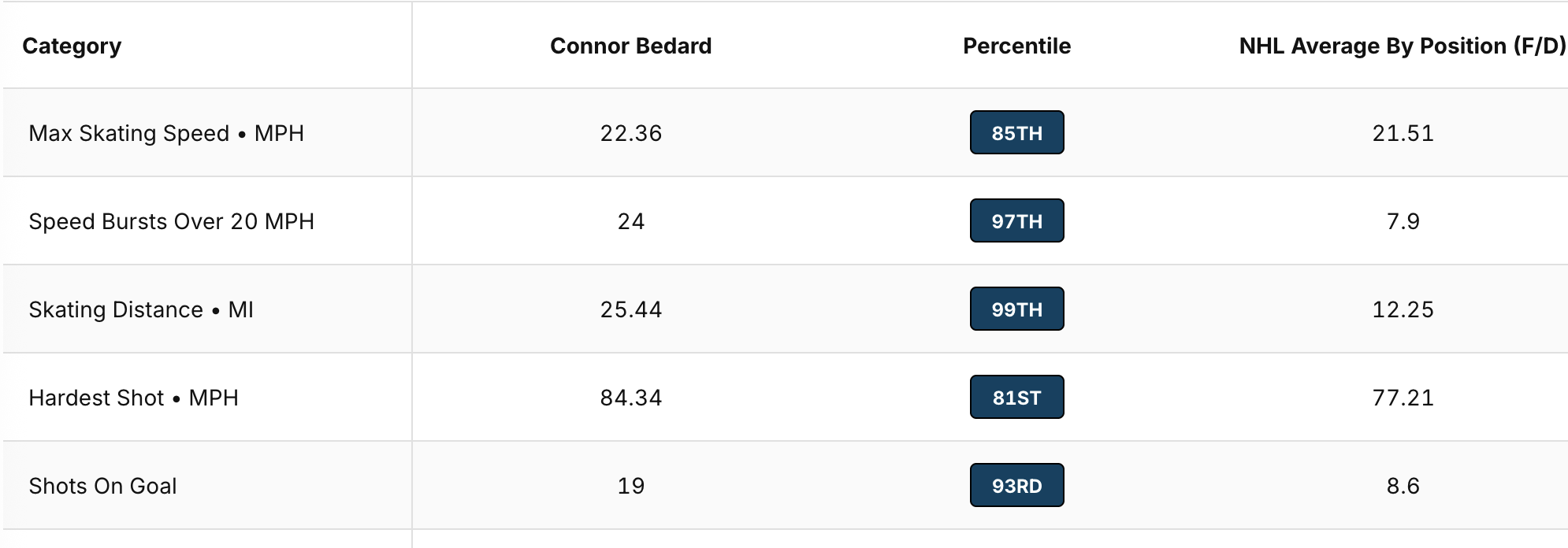I think it’s strange his top skating speed has decreased in each and every game since the start of the season. Game 1 he hit 22.36mph and has decreased every game since to 20.35mph last night.