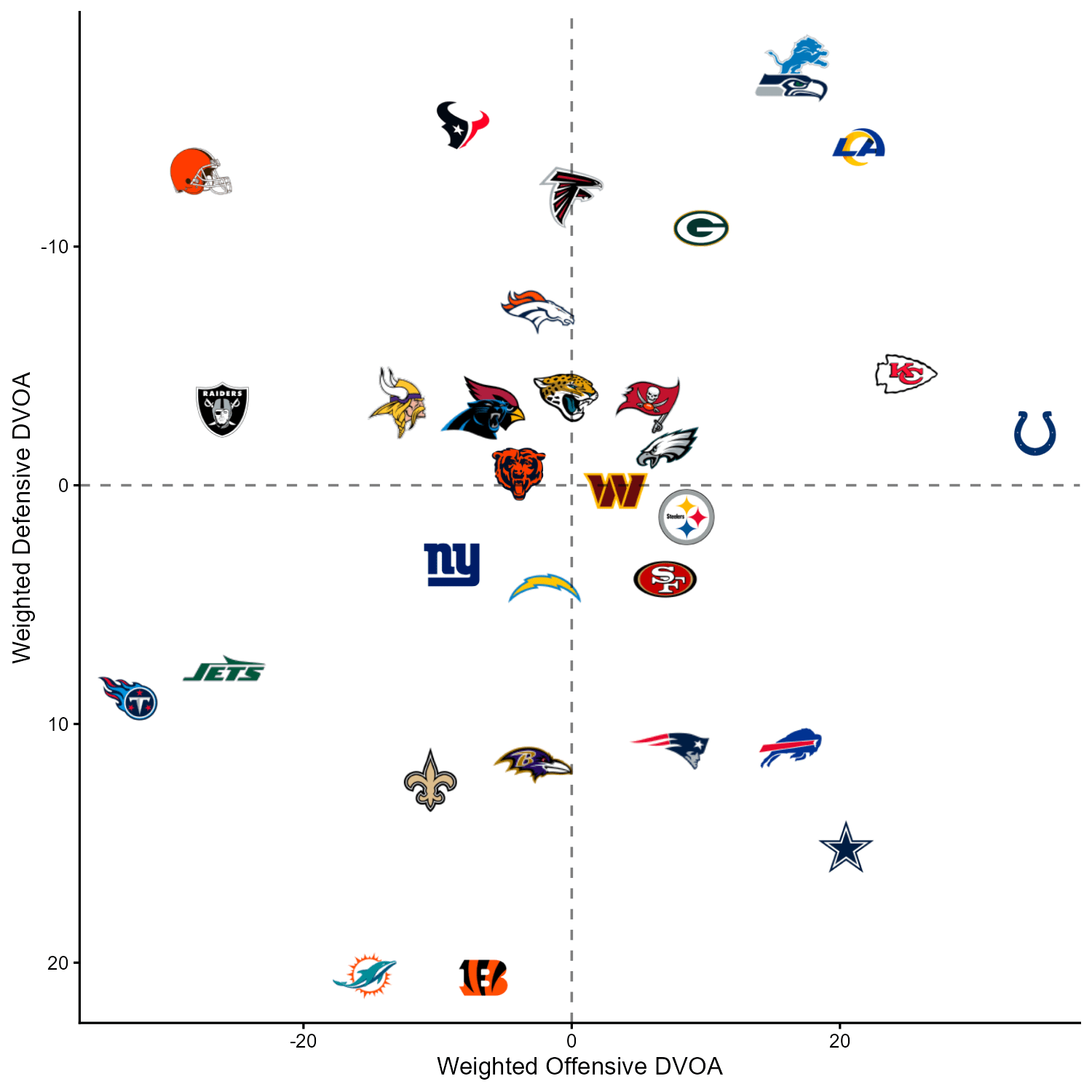 I knew our defensive EPA was good, but didn’t expect our DVOA to be this good. Too bad we’re still playing the Lions once and the Seahawks twice. O-line better strap the helmet on real tight because those are gonna be tough tough games.