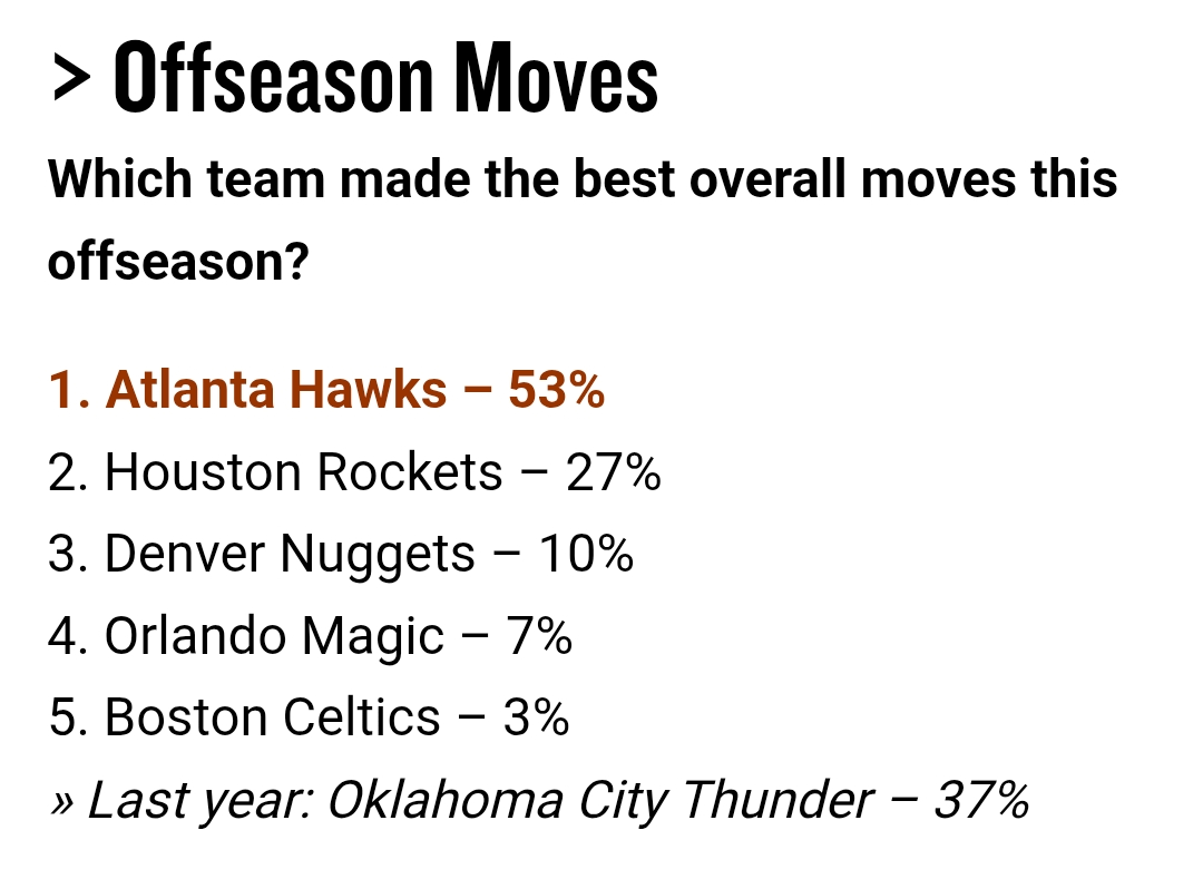 Best overall – his moves were all financial based. If they had a legit chance at a title this year, saving that much money, he would have gotten more votes