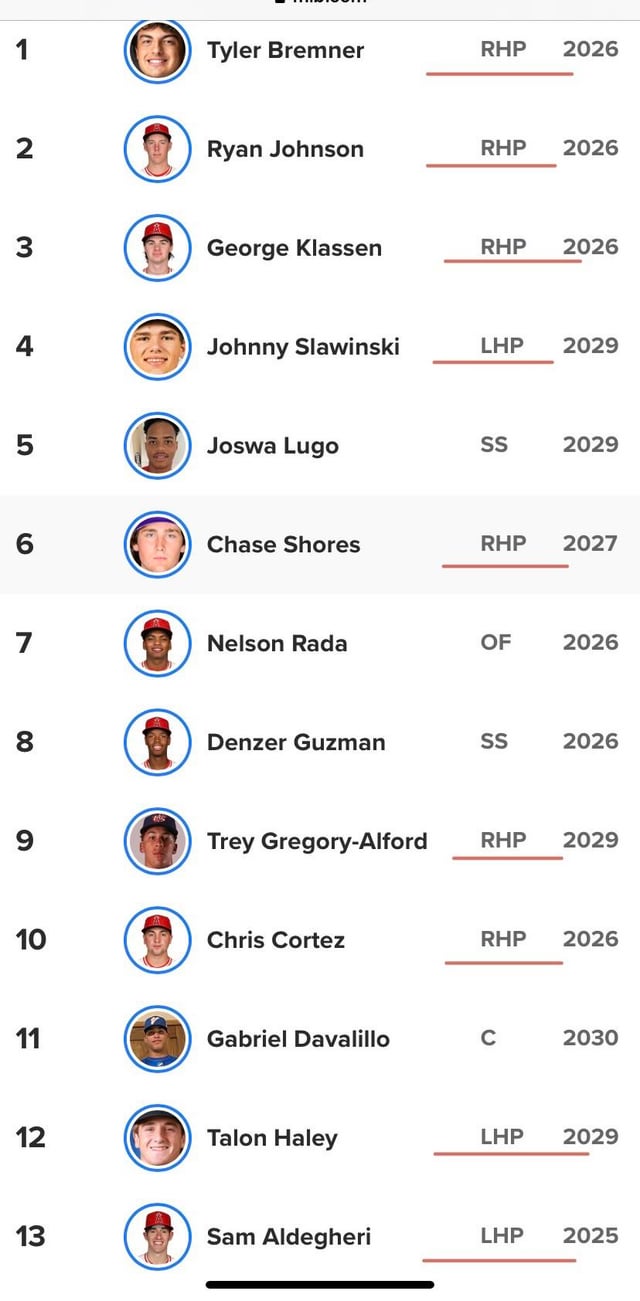 I mean weve all said that. They were 4th last year in farm pitching rank. But all of them still need 1 or 2 improvements, same with Dana who isnt a prospect anymore i believe. Edit: The biggest concern is that none of them project as top of the rotation guys which we need.